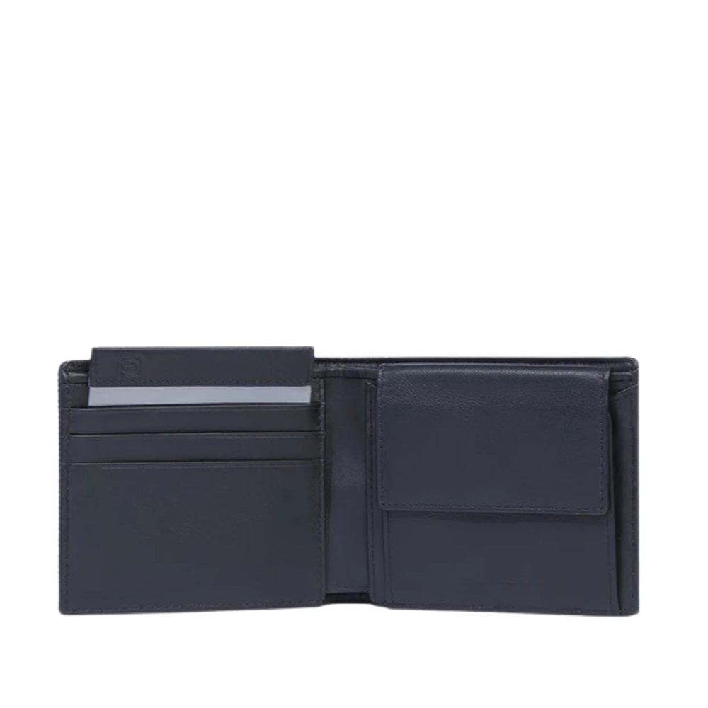 Mens wallet in recycled fabric and vegan leather by Piquadro with coin purse, credit card holder and detachable RFID-protected handwheel.
