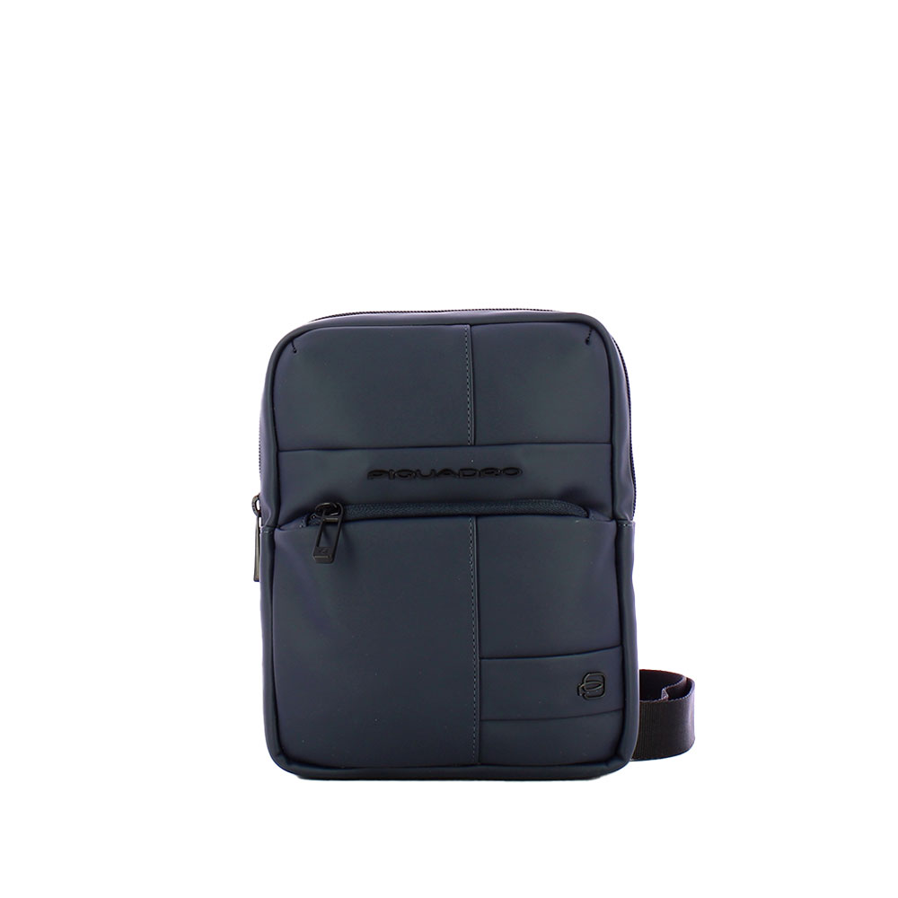 The pouch for iPad mini by Piquadro in rubberized fabric with front and back pocket, closed with zipper, main compartment with zip.