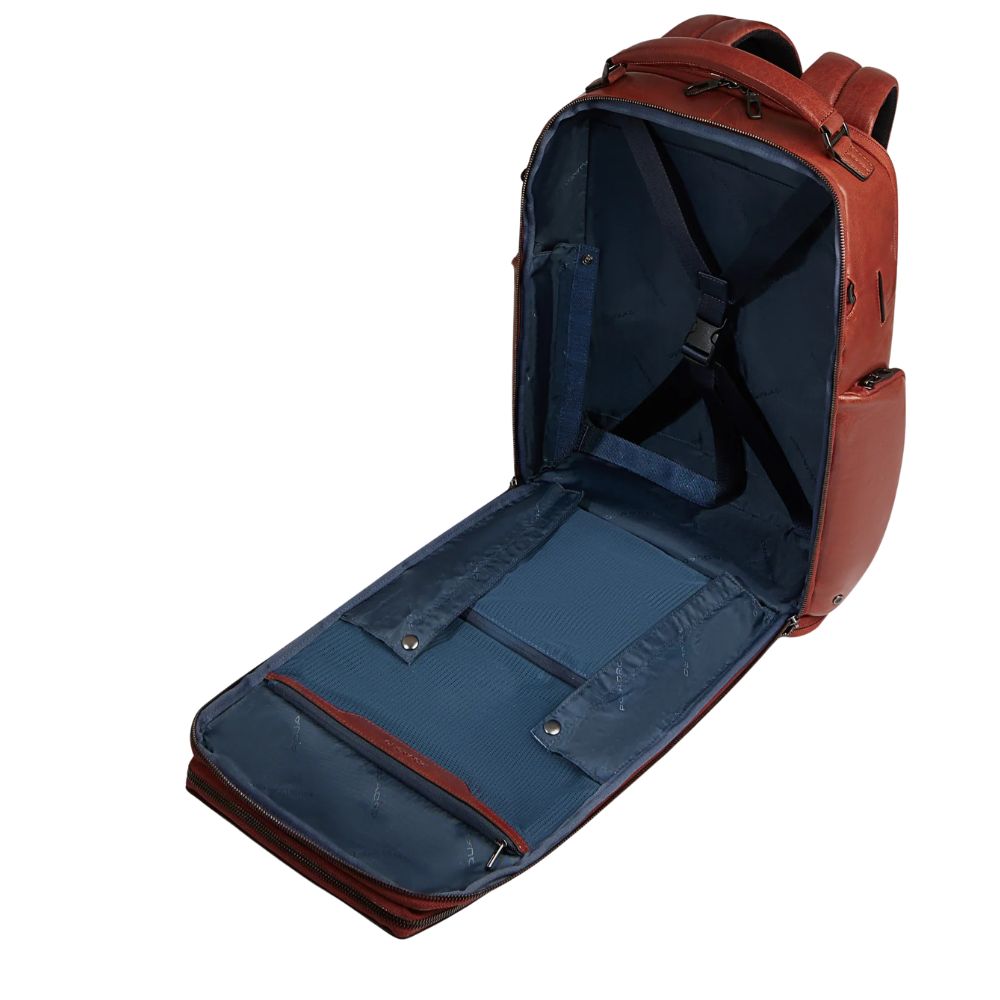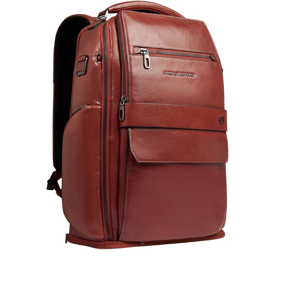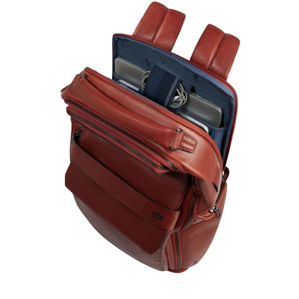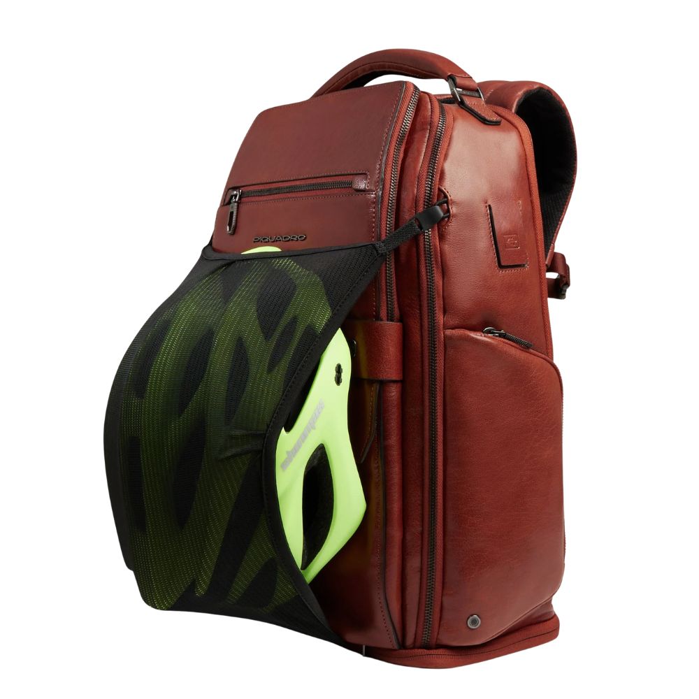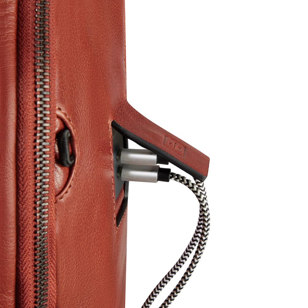 Backpack Customizable leather travel pane PC and iPad holder with USB and USB Type C ports, chest strap, shoe holder, shock protection and RFID.