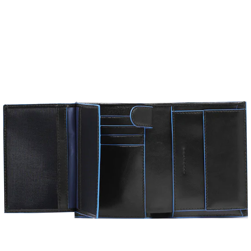 Wallet vertical man in leather of Piquadro with purse, credit card holder and two leaflets document holder, shielded with RFID protection.