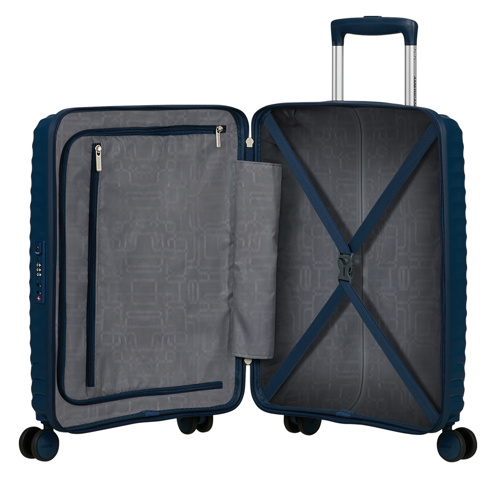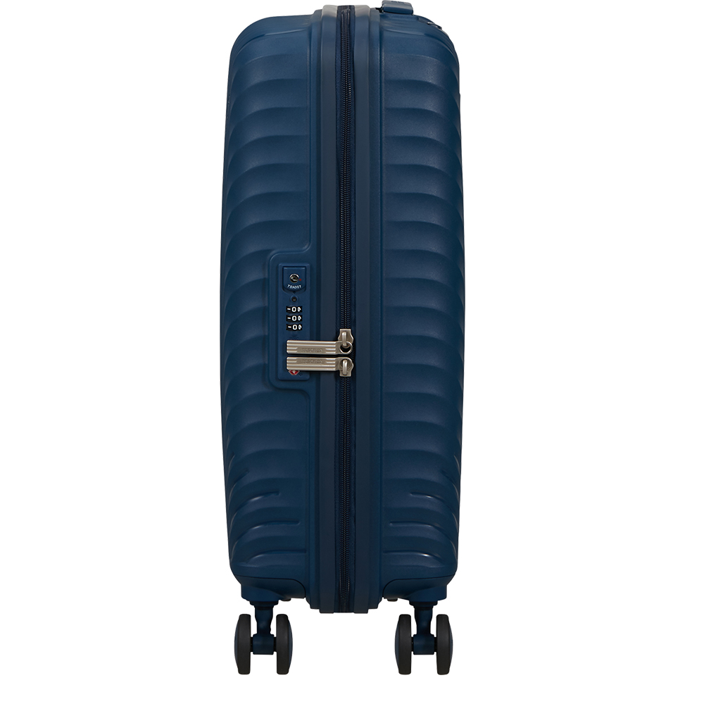 Samsonite's Diablast trolley features a sleek, streamlined design. The square shape offers maximum capacity. Get ready to travel in style.