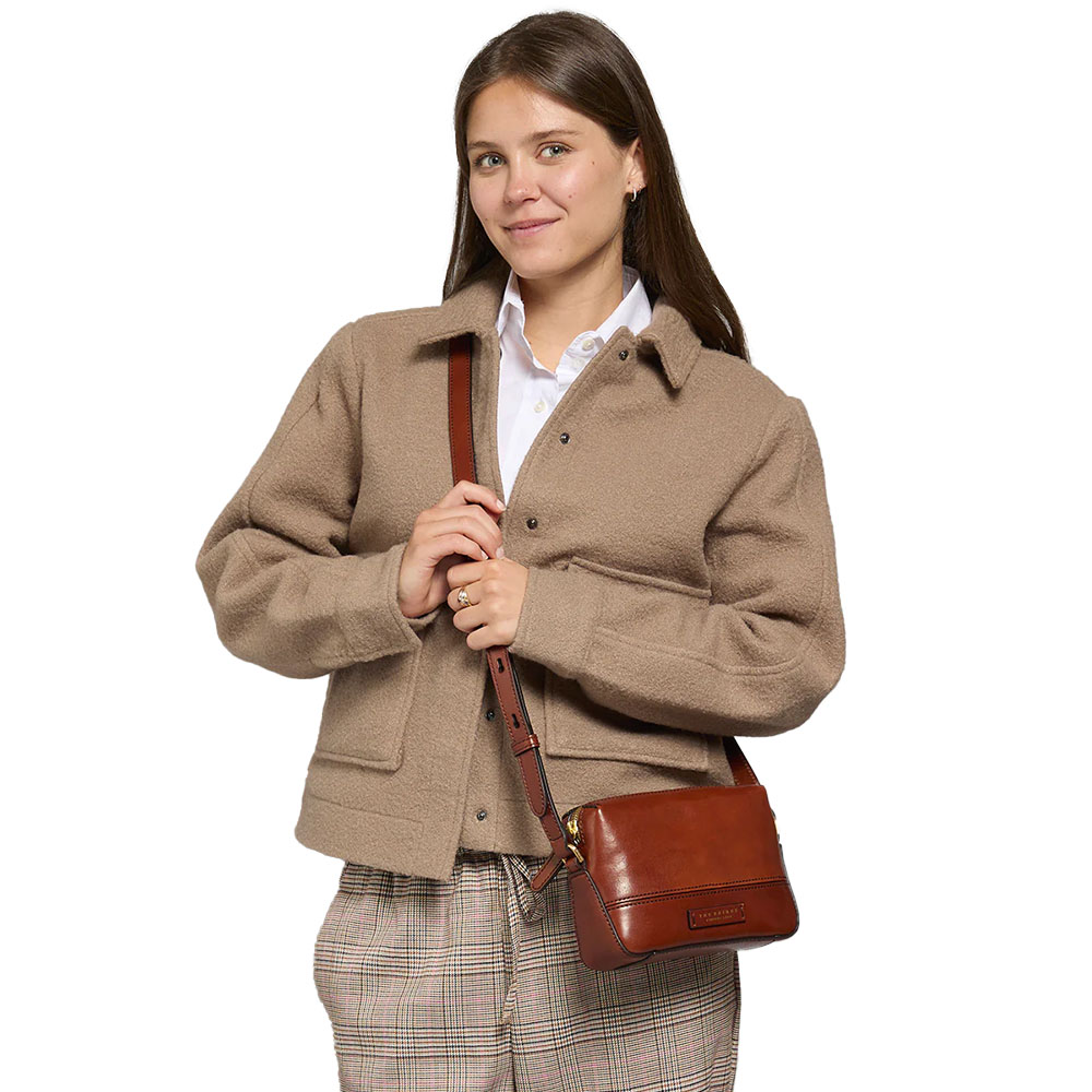 The Iolanda shoulder bag by The Bridge is a camera case with geometric lines and sophisticated curves. The leather of which it is made, adds a touch of fine elegance to this bag.