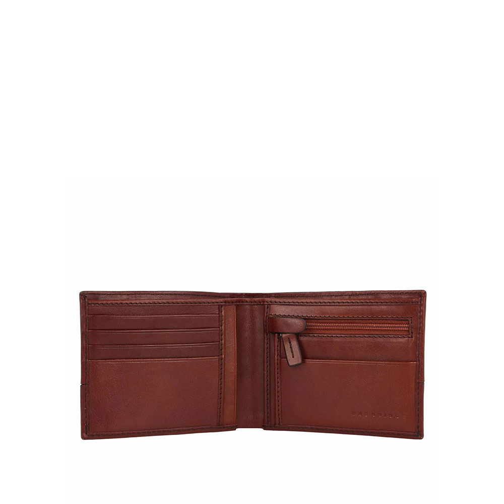 The Bridge mens leather wallet features compartments for banknotes and credit cards, as well as an internal zip-closed coin pocket. The compact size and linear design make it perfect as a gift idea.