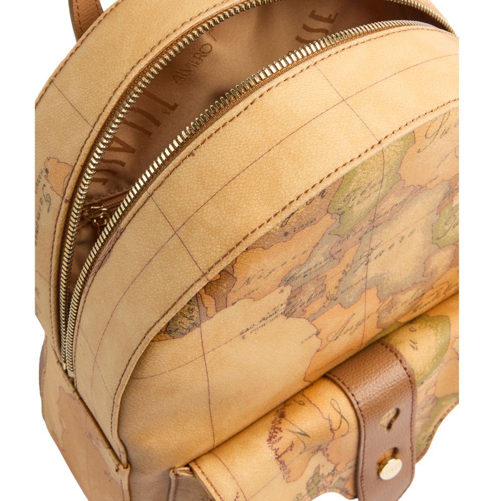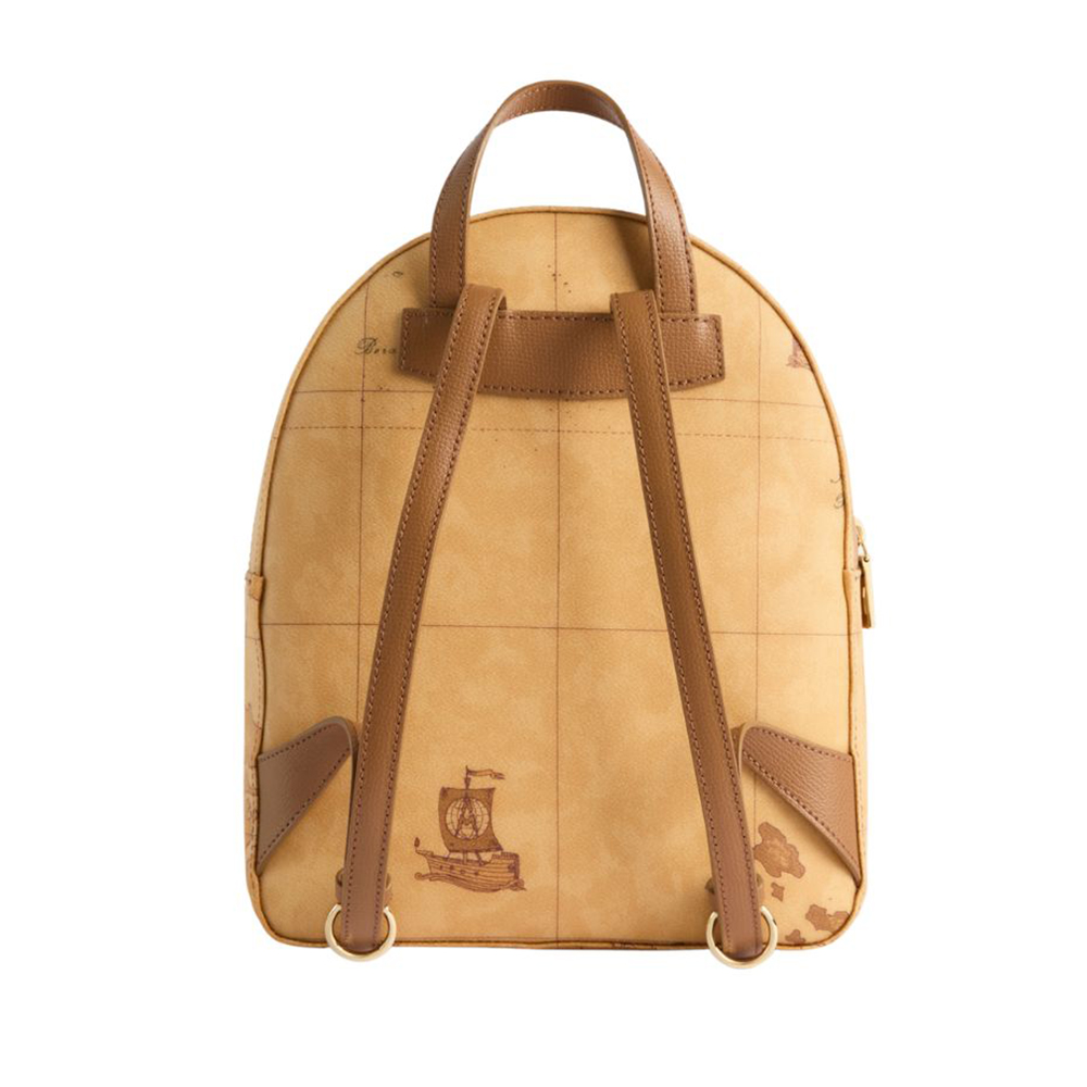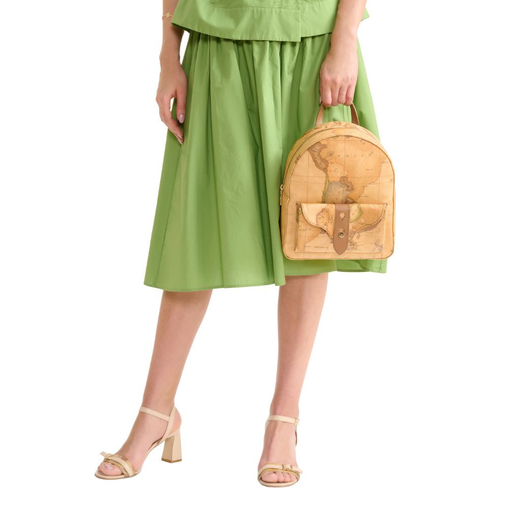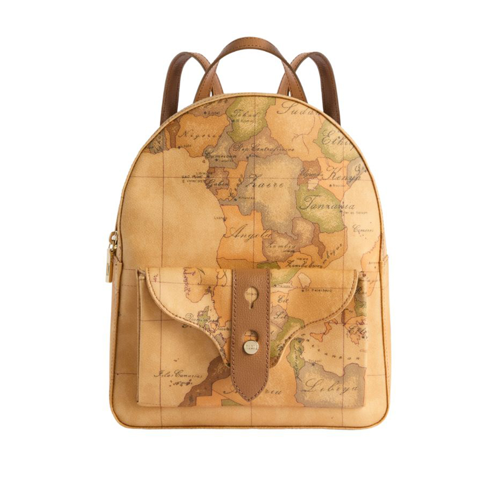 Realizzato interamente nell'iconico tessuto Geo Classic, lo zaino Escape Geo di Alviero Martini sarà l'accessorio chiave dei look urban-chic. La silhouette stondata è arricchita da una tasca frontale con patta dolcemente sagomata, attraversata nel centro dal listino in pelle granata fine con borchietta in oro chiaro logata 1A Classe. Il listino è declinato nei colori di Collezione, abbinandosi agli spallacci regolabili e interpretando l'iconica mappa in diversi mood. Un modello che incarna lo spirito del brand con un twist inedito ed esclusivo, perfetto per accompagnare le giornate in città.