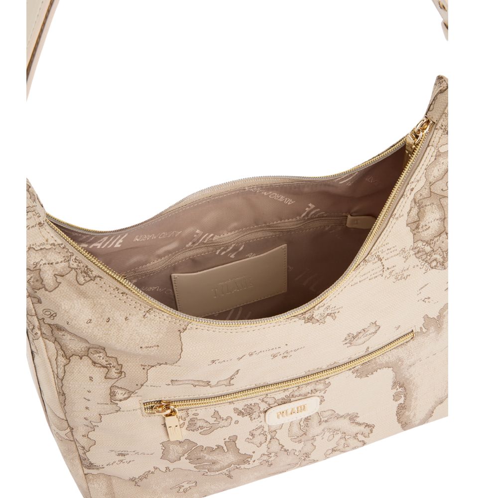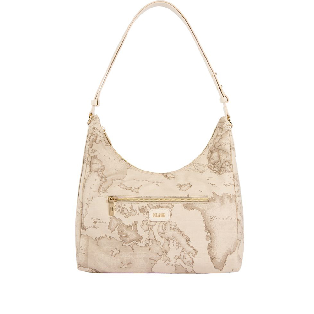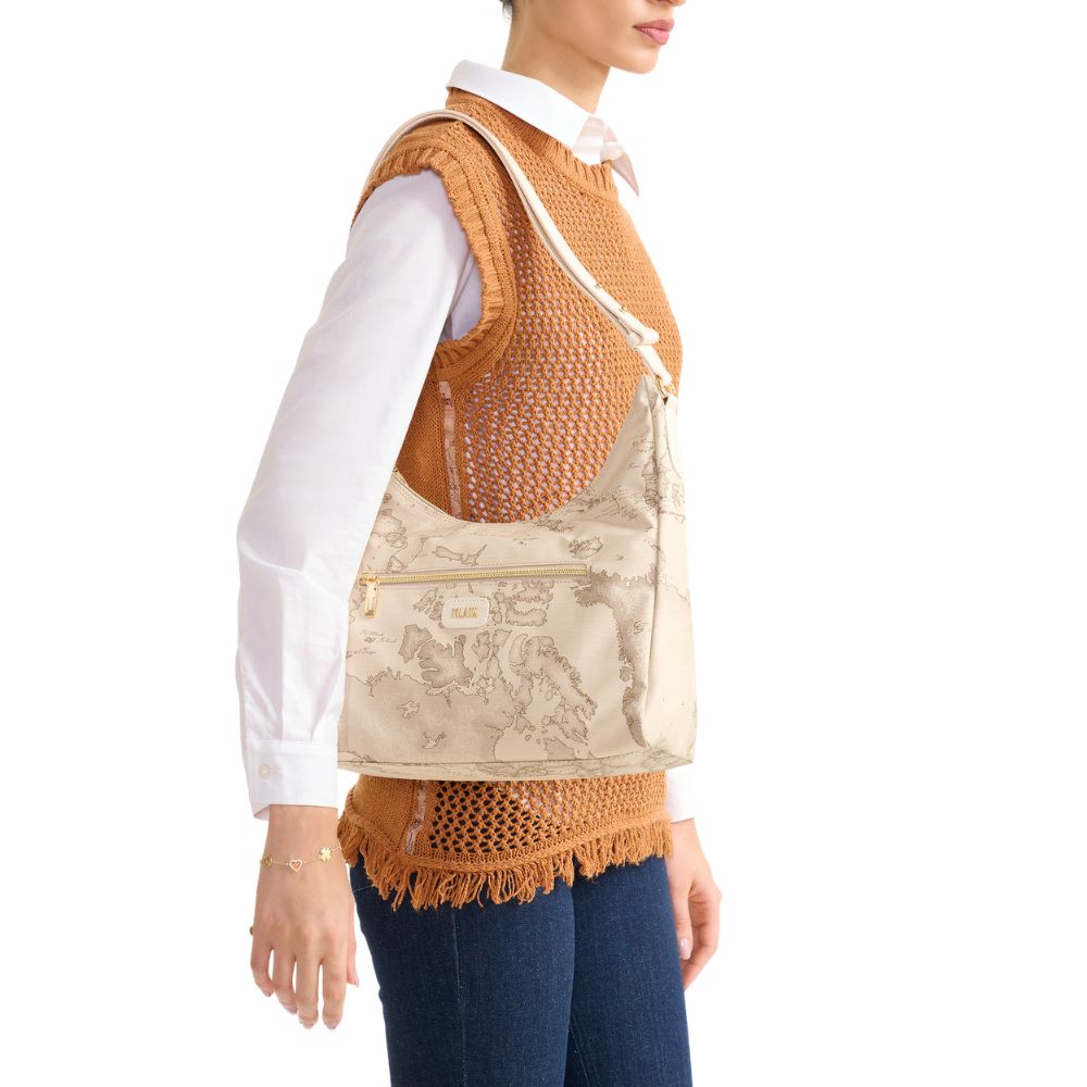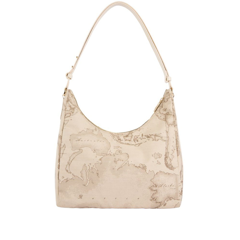 Il morbido tessuto soft di Alviero Martini è modellato in una sottospalla leggermente strutturata dal fianco largo e dalla testa scavata, per un look casual e funzionale e al contempo definito e di tendenza. La stampa Geo Safari le regala un mood estivo e si abbina all'inserto sagomato in pelle liscia color Rafia sul fianco, ispirato alle foglie di eucalipto Australiano, e al patch frontale con logo 1? Classe in oro chiaro. Lo spallaccio regolabile in pelle liscia consente anche la portabilità crossbody, sganciando i due bottoni a gemello e facendo scorrere le due estremità. Praticità e cura dei dettagli in un modello contemporaneo, perfetto per valorizzare i look della stagione.