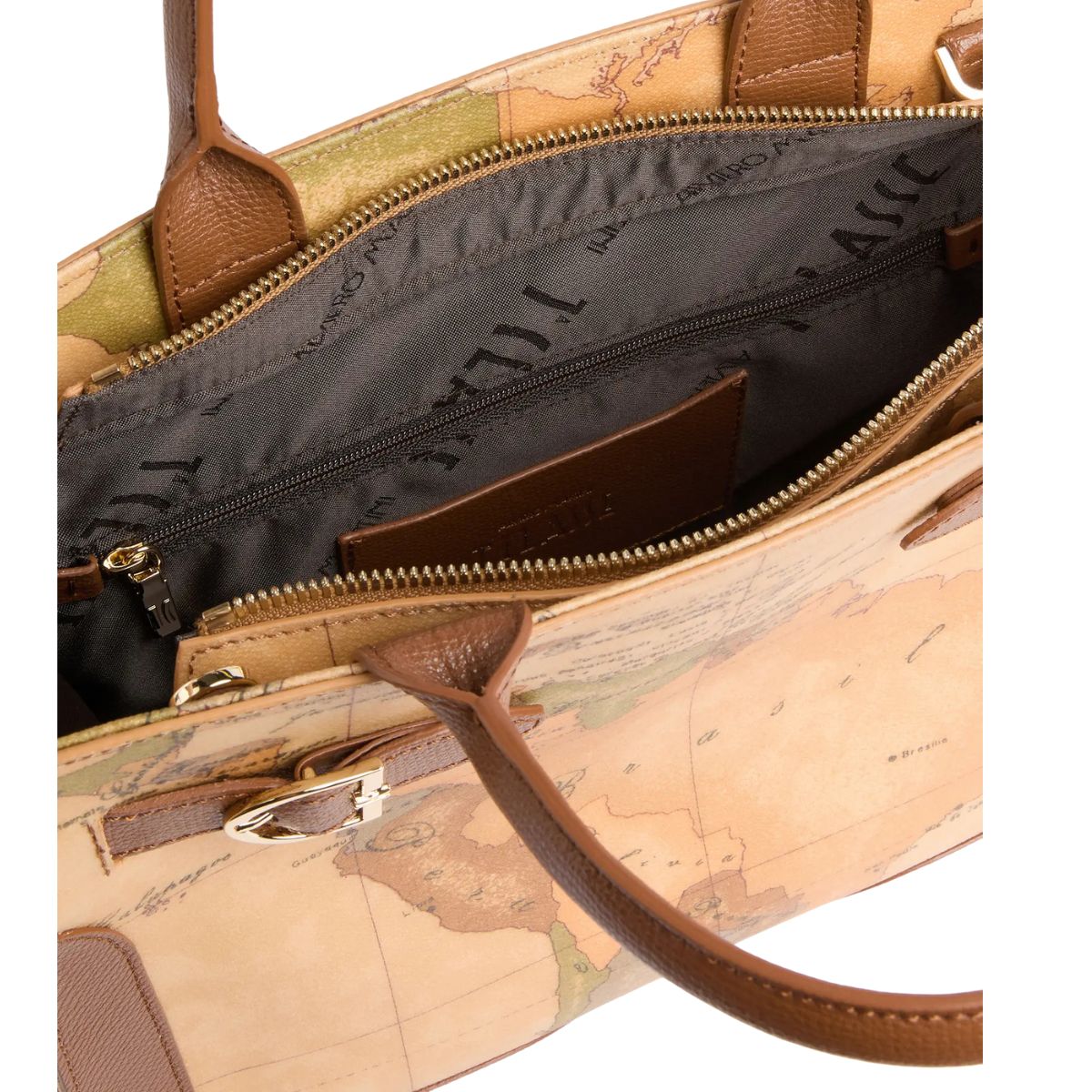 La borsa a mano in tessuto Geo Classic di Alviero Martini evoca paesaggi e tradizioni della Scozia in un design essenziale. I manici ripiegati e la tracolla regolabile e rimovibile in pelle granata consentono una doppia portabilità, mentre l'interno è capiente e organizzato in più tasche.