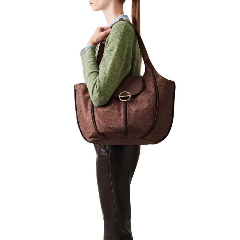 La borsa a spalla Cottage di Borbonese, combina perfettamente design e funzionalità. Pensata per accompagnare la donna in tutti i momenti della giornata. Questa borsa si distingue per l' attenzione ai dettagli che la rendono elegante.