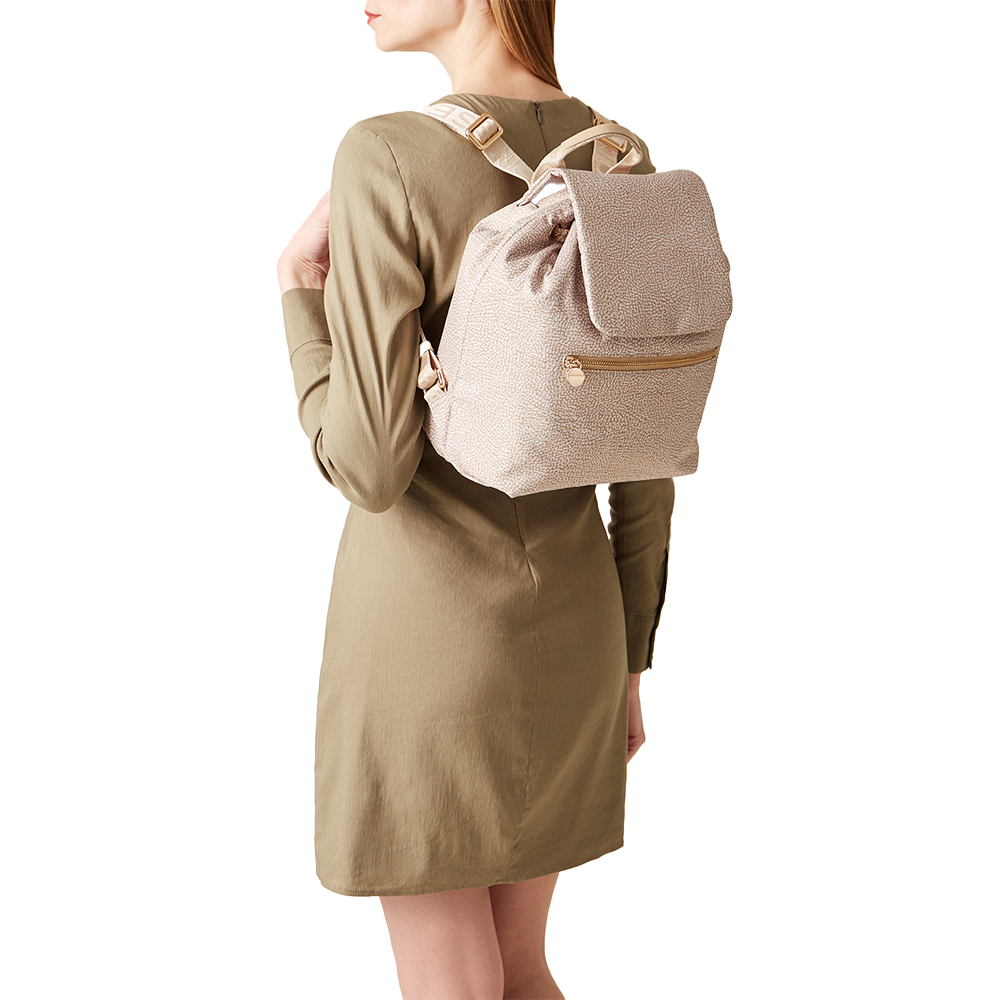 Lo zaino Eco Line di Borbonese si abbina facilmente ad outfit diversi. Perfetto in ufficio, nelle sessioni di shopping o da portare per il fine settimana.