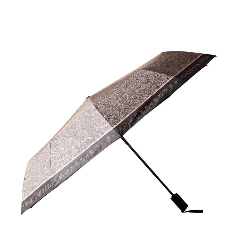 L'ombrello di Borbonese è in grado di aggiungere un tocco di classe nelle giornate di pioggia. Il tessuto impermeabile è stampato con l'iconico motivo OP. Pieghevole e con la pratica apertura a scatto, entra comodamente in borsa.