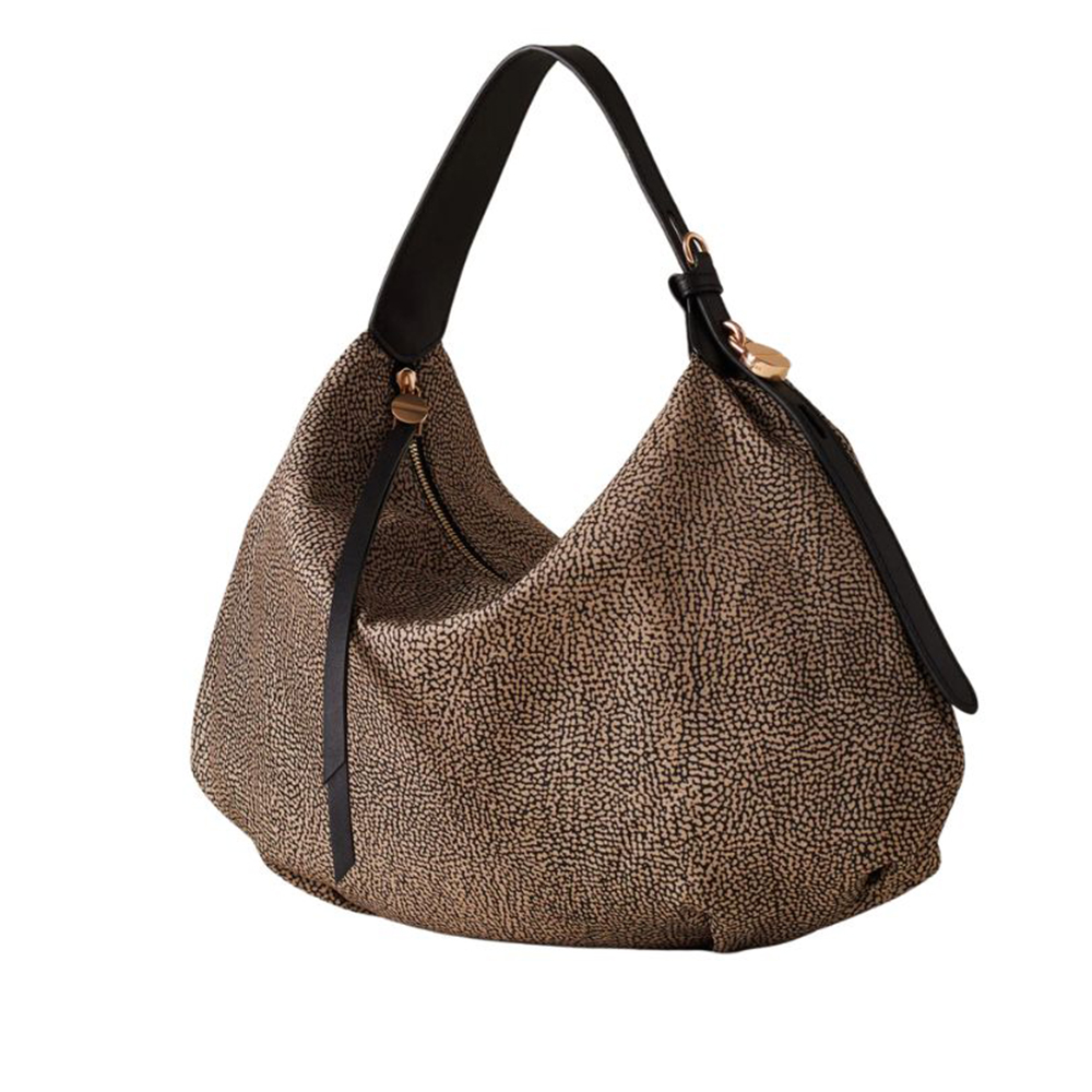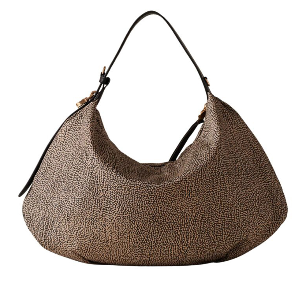 La borsa hobo di Borbonese con dettagli iconici e contemporanei, definiscono questo modello perfetto per chi ama uno stile giovane e dinamico.