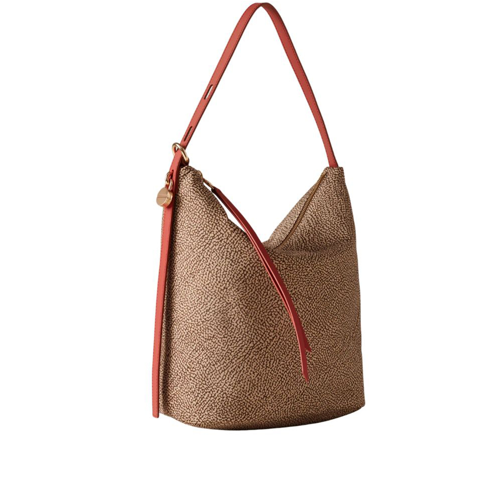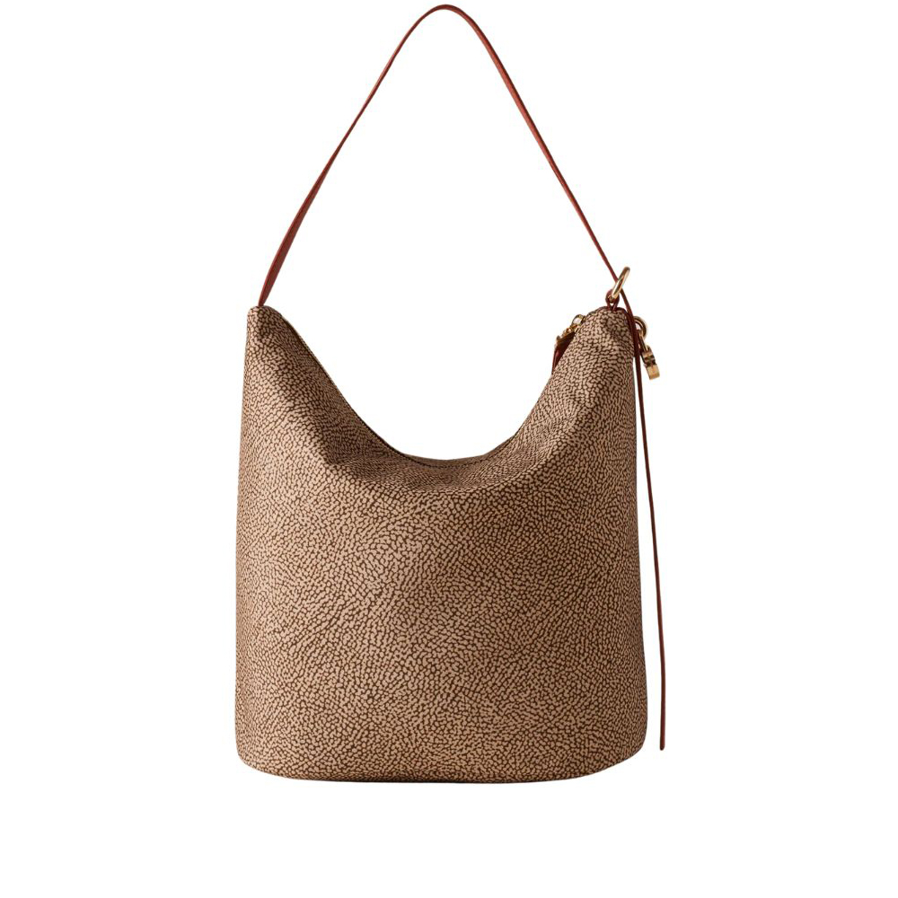 La borsa a spalla Prive di Borbonese ha uno stile minimale ed elegante che si abbina perfettamente a un outfit casual chic. Il tessuto rende questa borsa a forma di secchiello molto versatile.