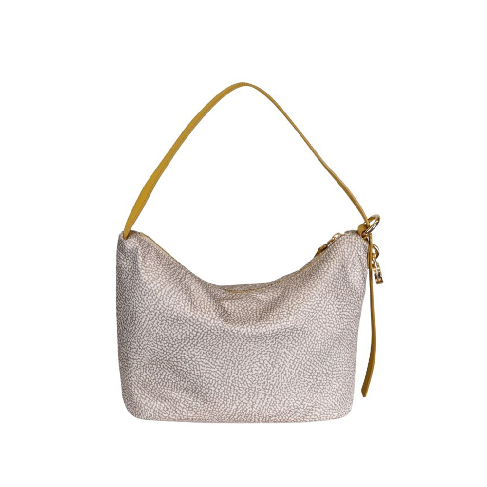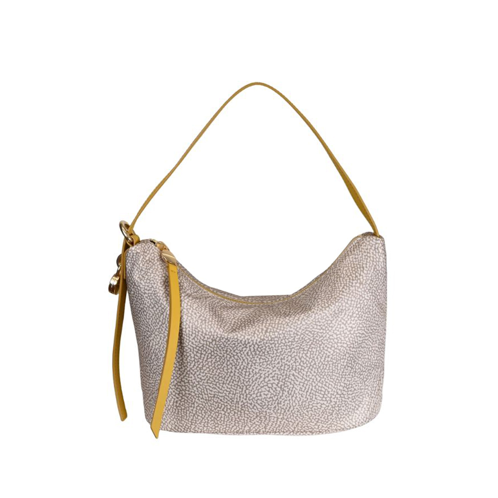 La borsa a spalla Prive di Borbonese ha uno stile minimale ed elegante che si abbina perfettamente a un outfit casual chic. Il tessuto rende questa borsa a forma di secchiello molto versatile.