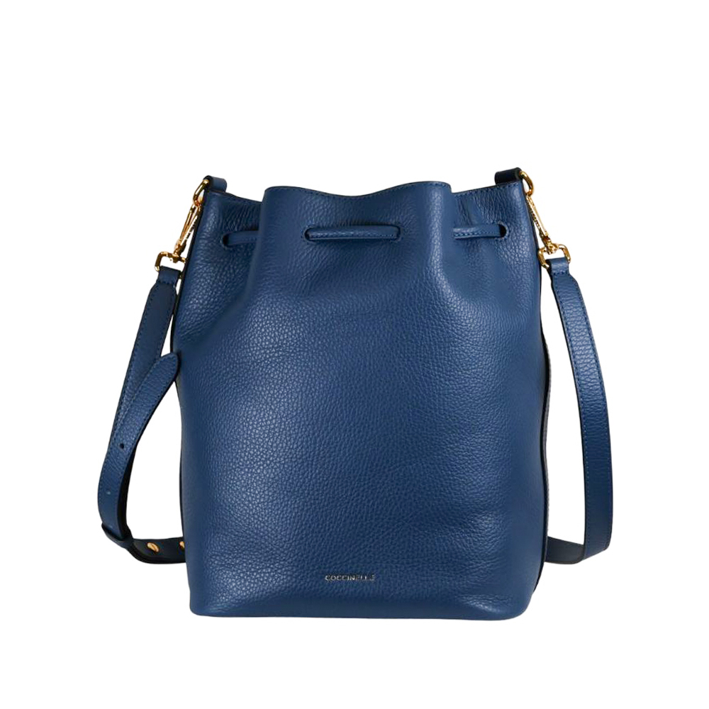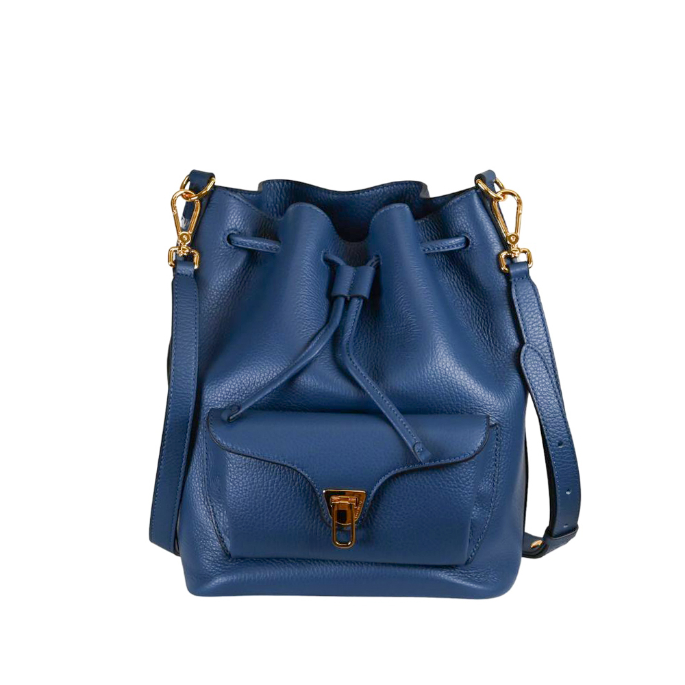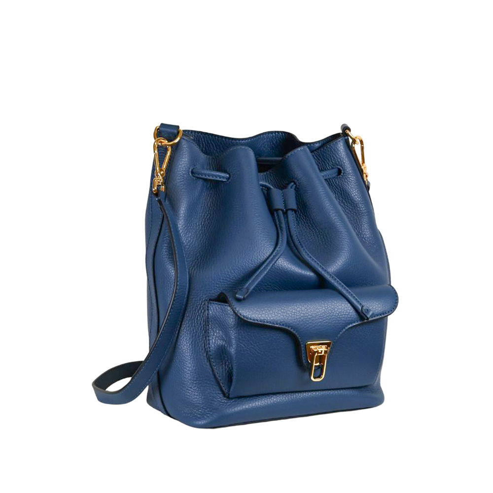 Il secchiello Beat Generation di Coccinelle, comodo ed elegante, è arricchito da una tasca esterna caratterizzata dall'iconica chiusura in metallo a forma di plettro.
