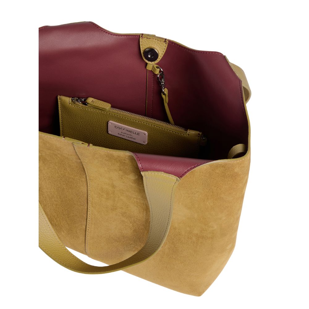 La borsa C-Easy di Coccinelle ha una linea modellata su curve sinuose che esaltano la bellezza del materiale. Il fulcro del design è il dettaglio metallico del manico, il nuovo logo C-Me. questa borsa può essere chiusa centralmente con magnete, lasciando i lati aperti, altrimenti i fianchi possono essere piegati, usando i lacci con gemello.