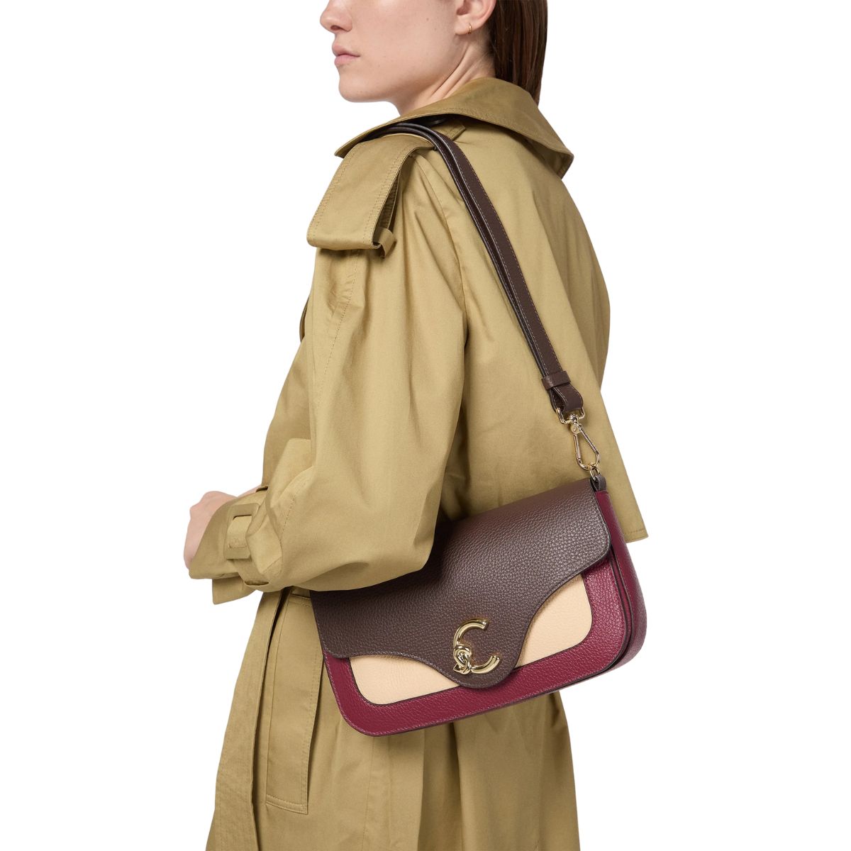 La borsa C-Me di Coccinelle dalle linee geometriche e le curve sofisticate, rafforzano la singolarità del suo design. La costruzione del modello aggiunge un tocco di funzionalità e delicata eleganza.
