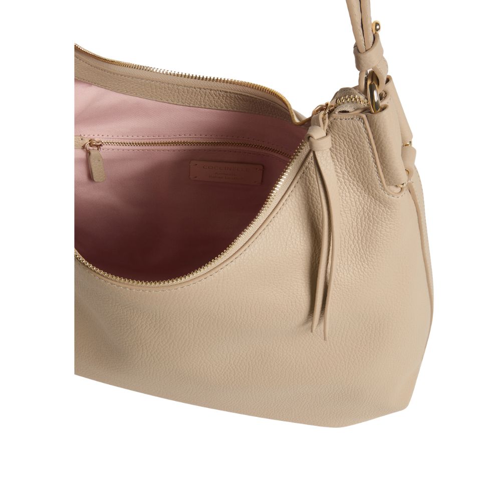 La borsa a spalla Rebekka di Coccinelle ha una linea modellata su curve sinuose che esaltano la bellezza del pellame. Questa borsa è caratterizzata dall'insellatura, data dalla morbidezza della pelle, che ne conferisce versatilità e attitudine.