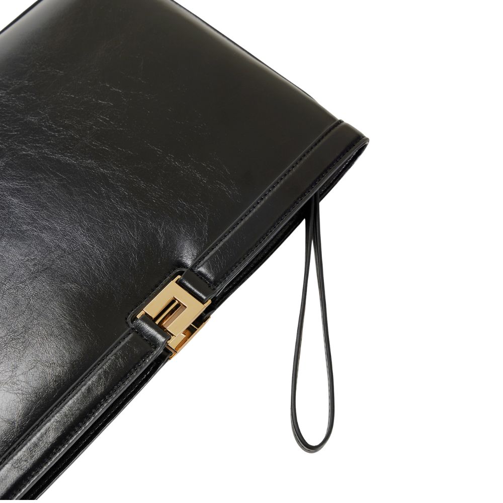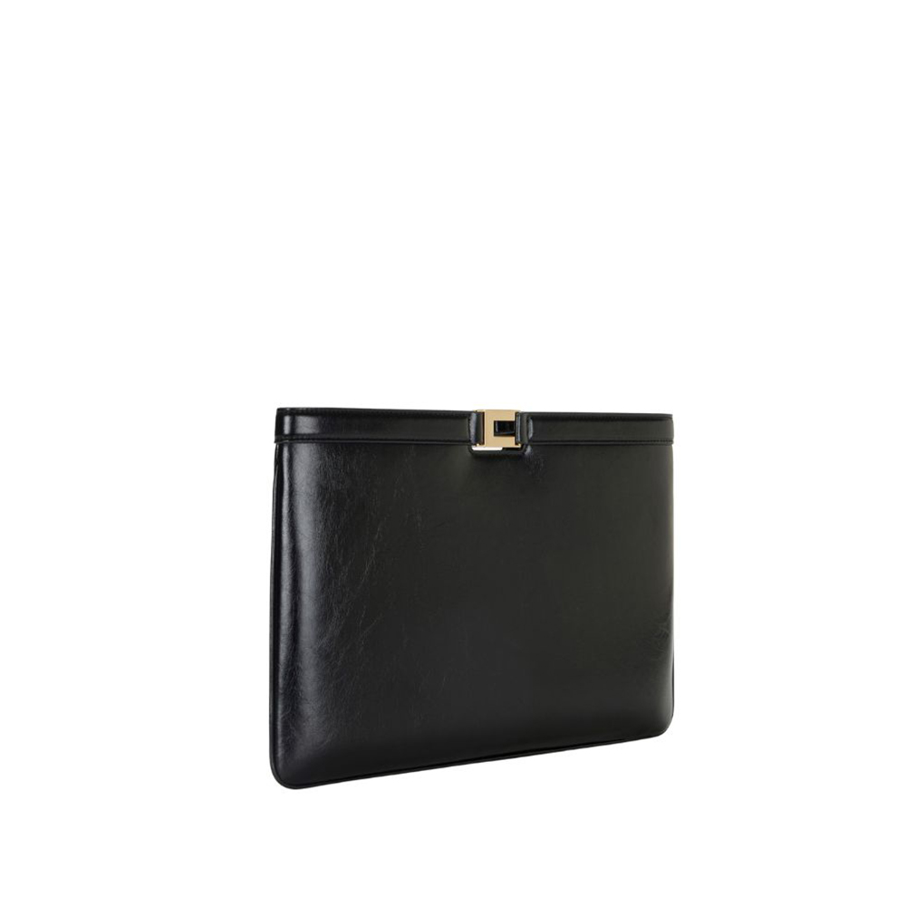 Borsa di Elisabetta Franchi realizzata in materiale sintetico con texture effetto naplak. Con design a busta, ha dettaglio in metallo dorato con logo per una nota luminosa.