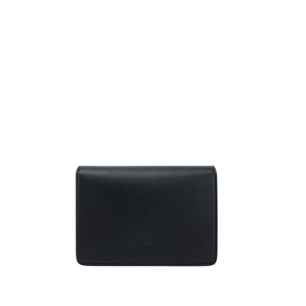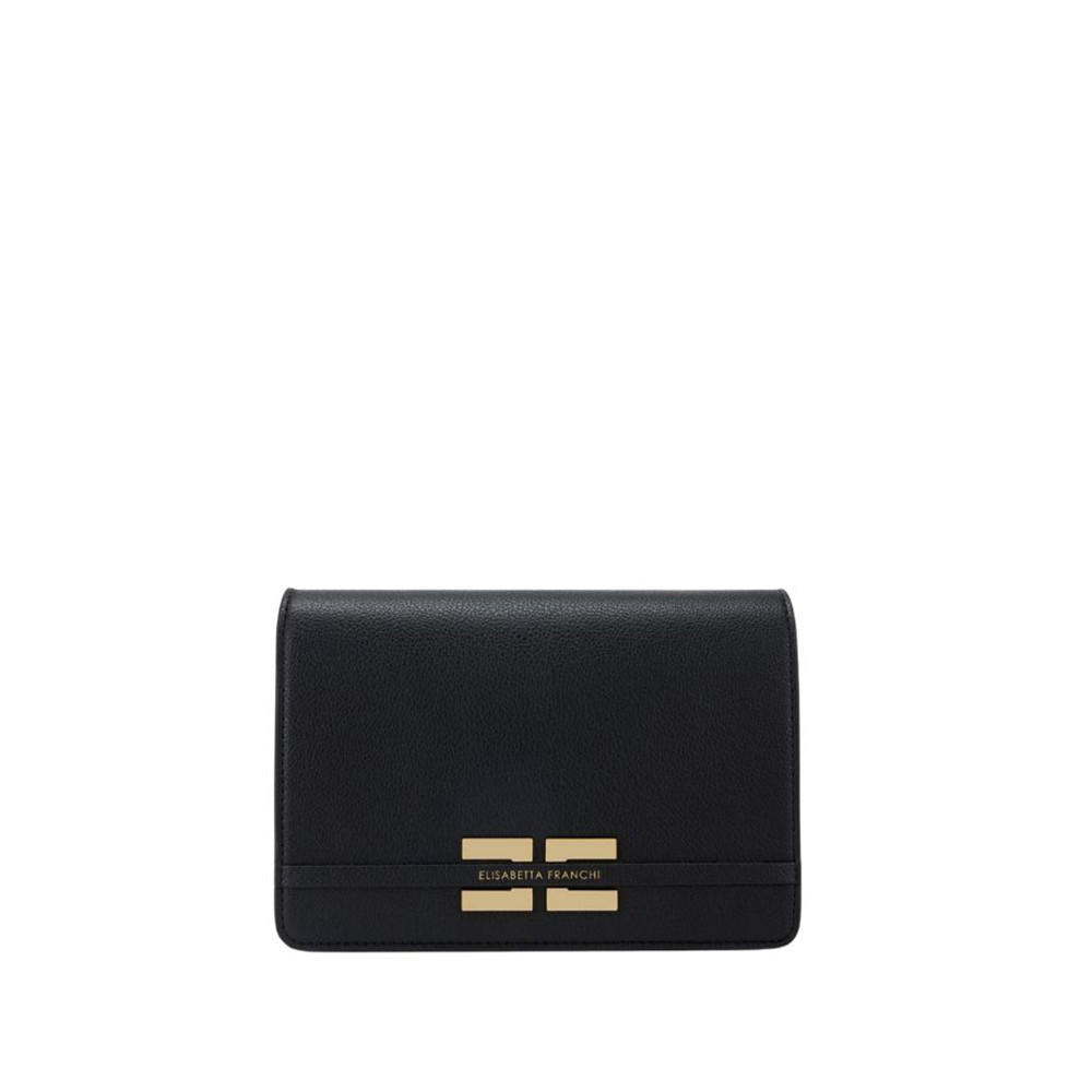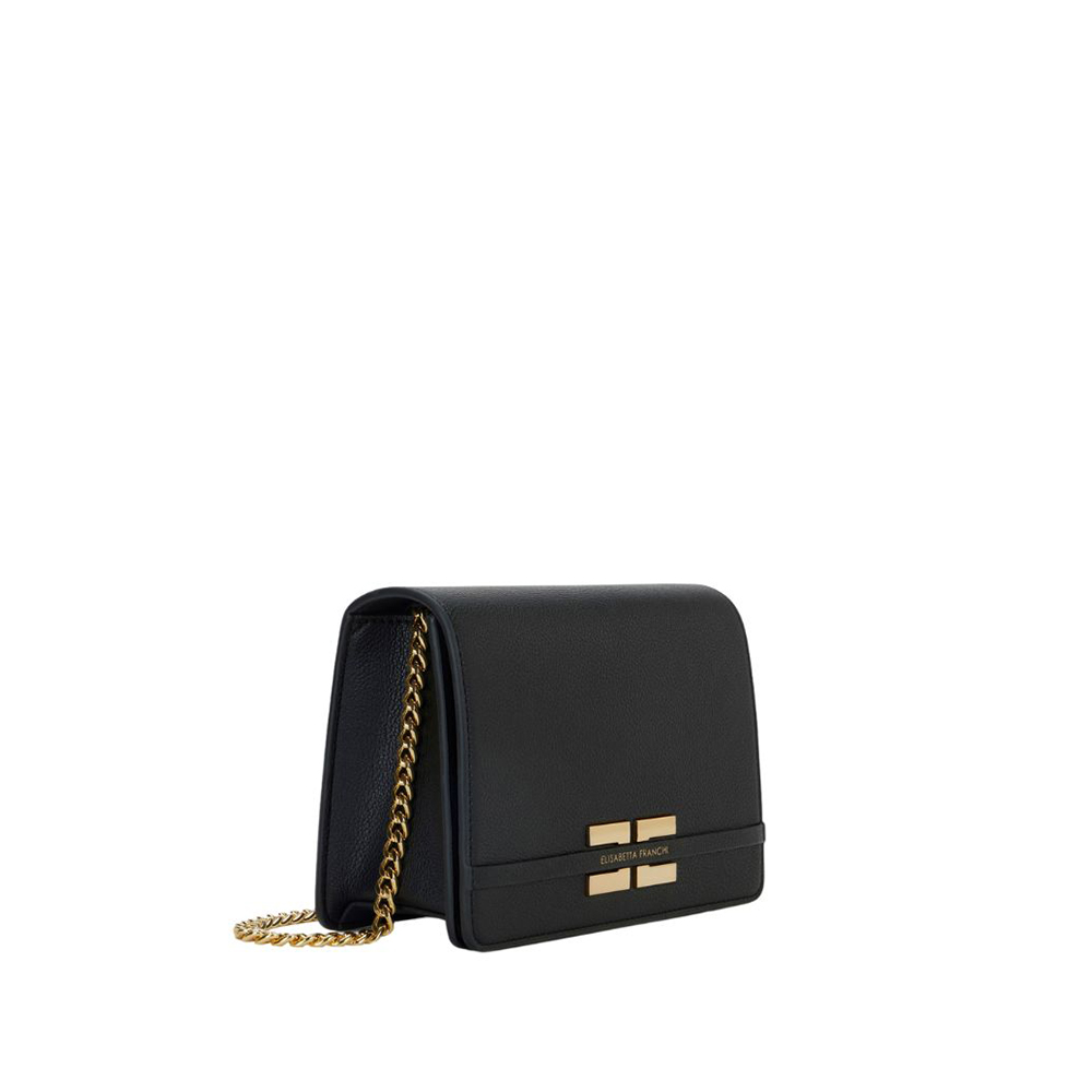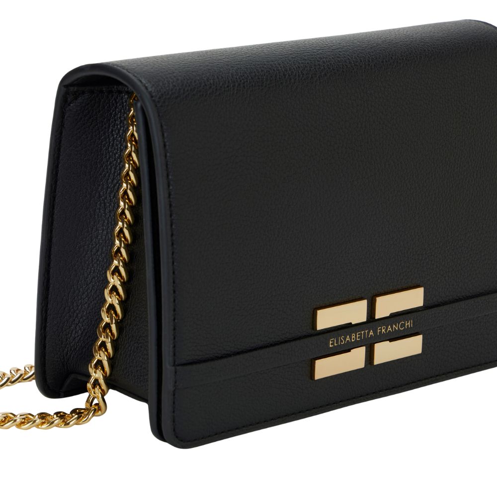Borsa di Elisabetta Franchi realizzata in materiale sintetico con texture effetto pelle. Con tracolla in catena groumette, ha shape compatta e lineare ed è impreziosita dalla placca con logo sul davanti.