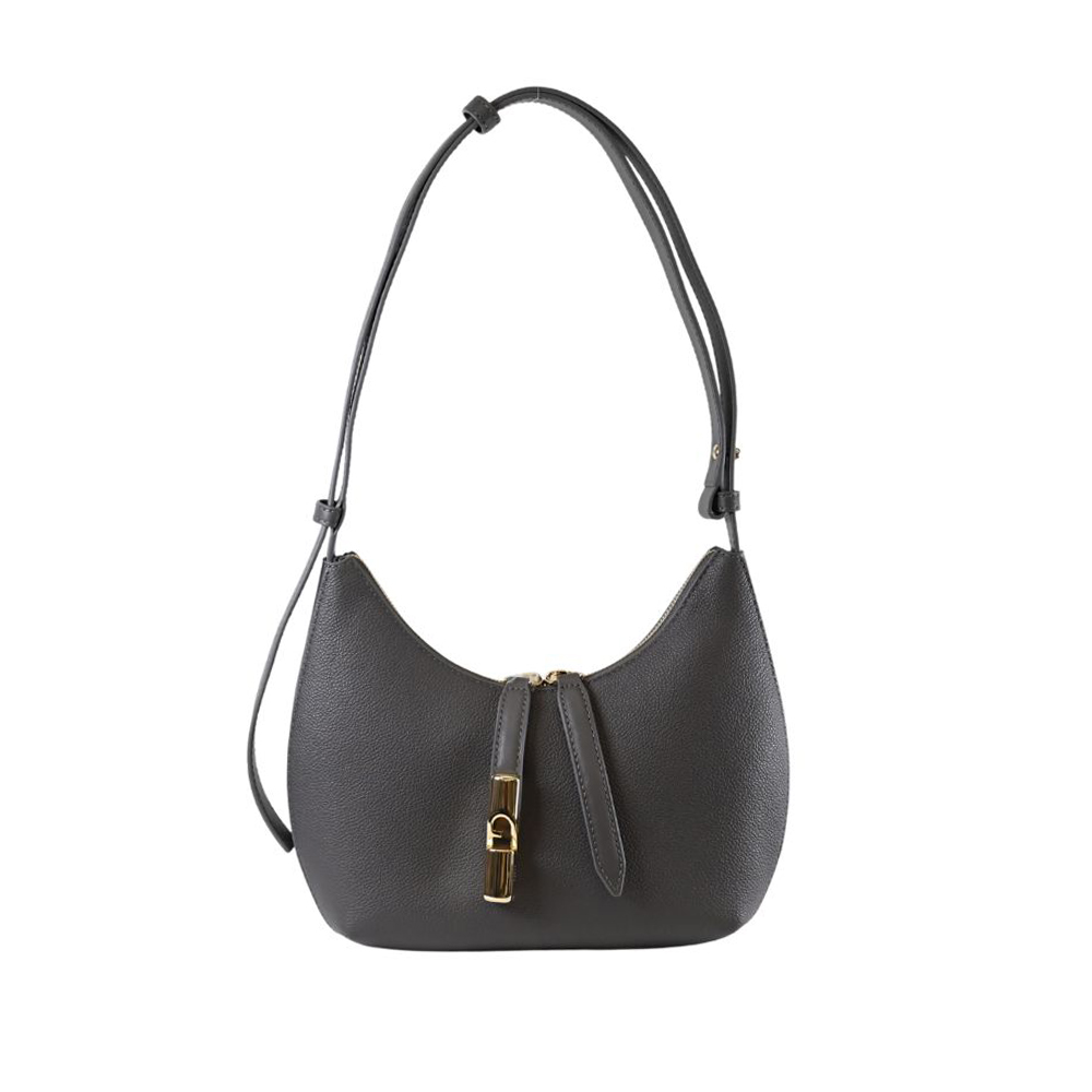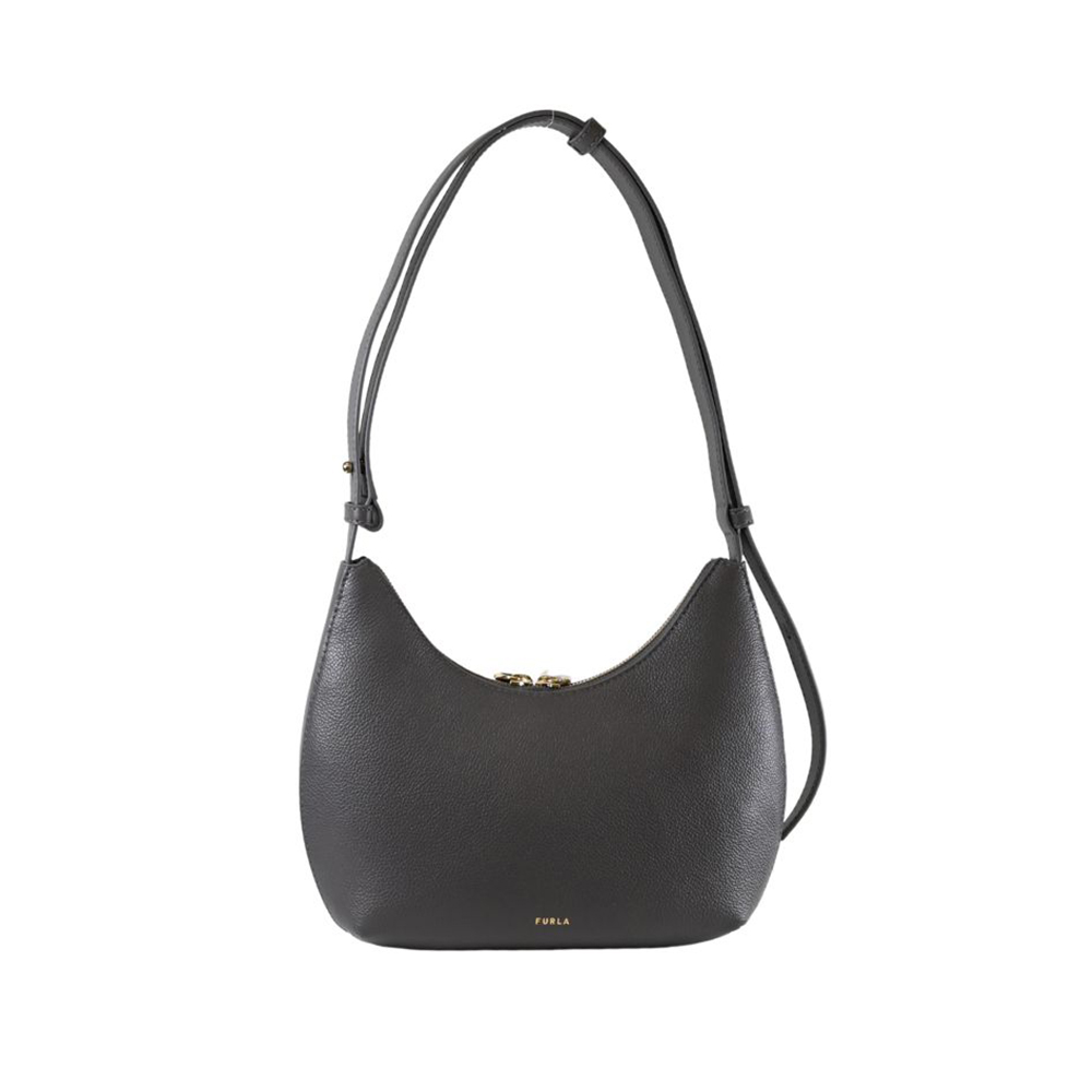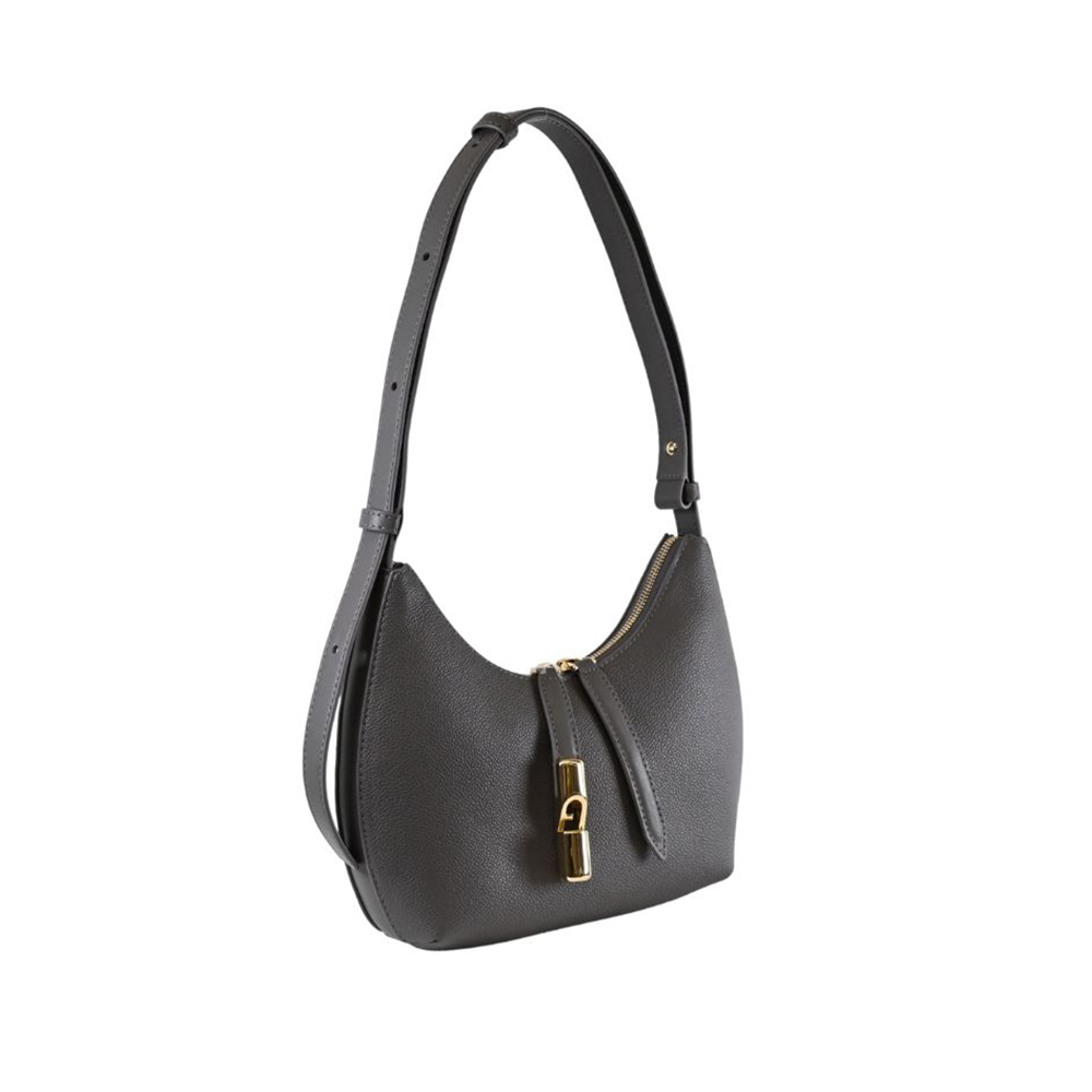 La borsa Goccia di Furla è la shoulder bag dalle linee morbide e sinuose. In un gioco di contrasti materici tra pelle martellata e dettagli in pelle liscia, si caretterizza per la forma stondata e una silhouette compatta ma spaziosa. La chiusura con doppio cursore a zip è impreziosita dal particolare hardware cilidrinco in finitura lucida con logo Arco.