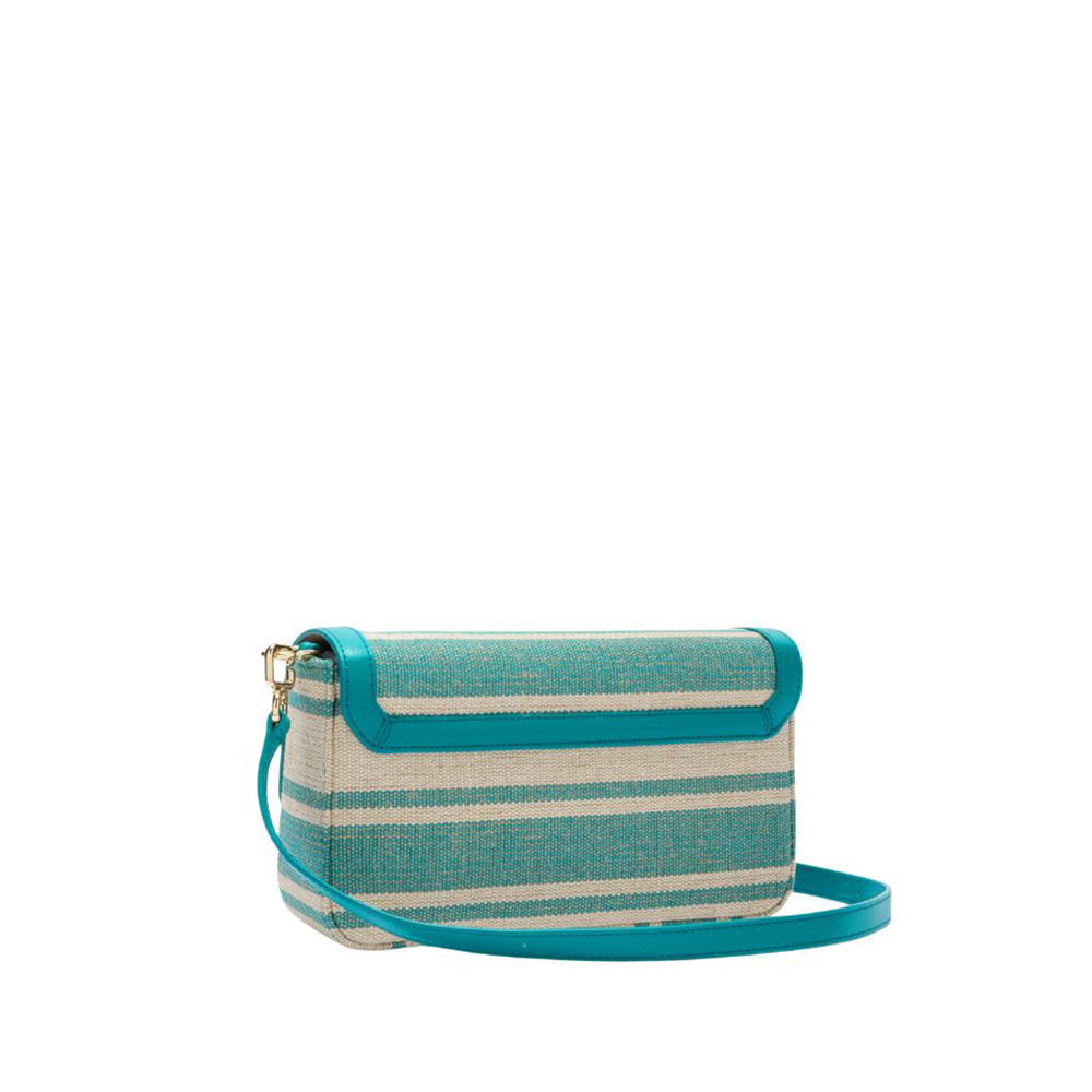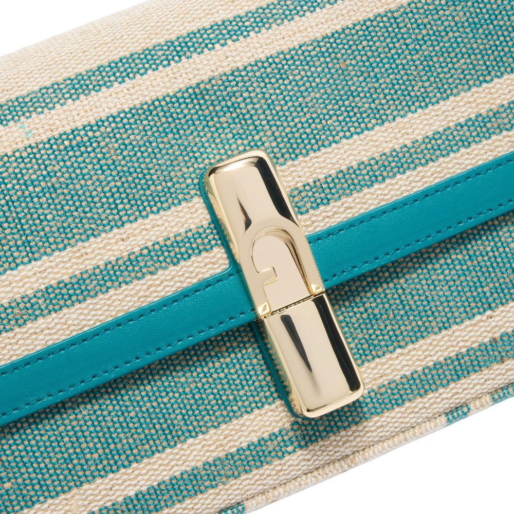 La borsa a tracolla Iride di Furla è caratterizzata da un design versatile e contemporaneo. Il corpo della borsa di dimensioni compatte è realizzato in tela con disegno a righe, rifinito da eleganti e pregiati dettagli in pelle liscia. Corredata dalla tracolla regolabile e rimovibile, presenta una chiusura magnetica impreziosita dall'hardware cilindrico in metallo con l'iconico logo Arco Furla.