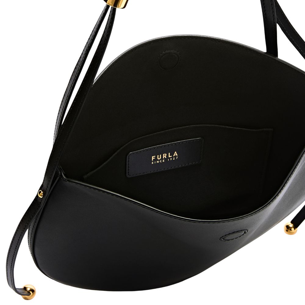 La borsa a spalla Moonstone di Furla ha una silhouette contemporanea dalla tipica forma a sella. Il design in pelle di vitello viene esaltato dalle linee morbide e arrotondate. La tracolla fissa e regolabile consente diverse opzioni di styling. L'hardware cilindrici e i due elementi a Sfera aggiungono un tocco elegante e distintivo al modello.
