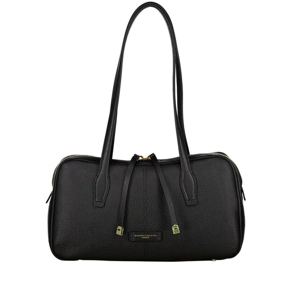 Aryna è la bowling bag firmata Gianni Chiarini, realizzata in pelle martellata. Ideale per una donna sportiva e disinvolta, ma sempre attenta alla femminilità. Dotata di doppio manico per una portabilità a mano, presenta uno scomparto principale con zip a doppio cursore e tirazip in pelle con dettagli metallici. I rivetti logati completano il design con un tocco distintivo.