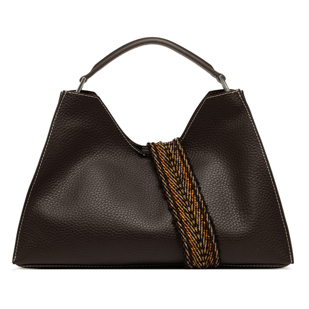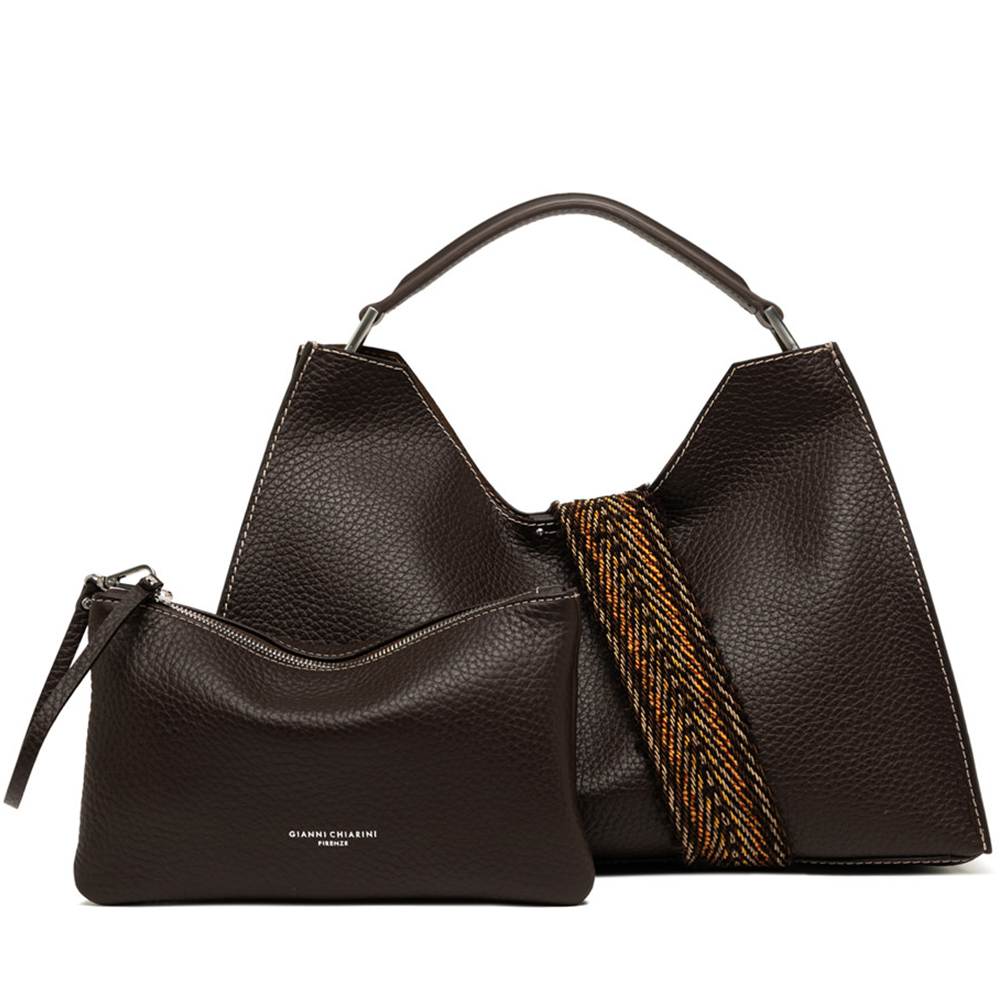 La borsa Aurora di Gianni Chiarini Firenze, caratterizzata da una forma trapezoidale, è realizzata in pelle double grana maxi e arricchita con dettagli in metallo. Sinonimo di eleganza contemporanea, è dotata di una pratica tracolla in pelle regolabile e removibile, e include una pochette coordinata.