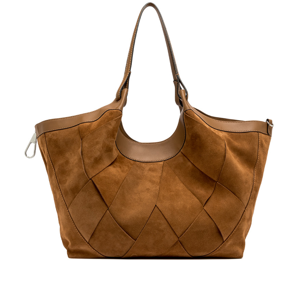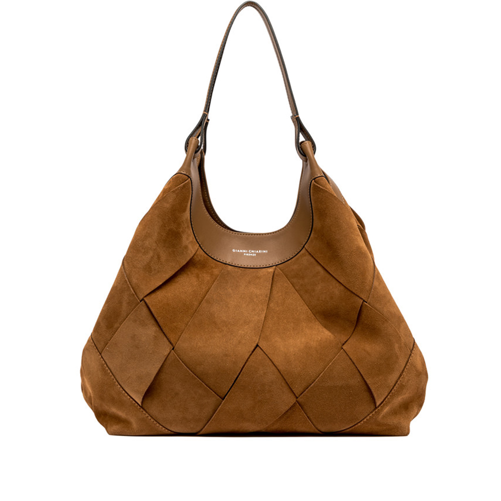 Dua è l'icona del brand Gianni Chiarini una borsa dal design semplice ma contemporaneo. Realizzata in pelle di camoscio con trama geometrica, si distingue per il suo stile country-chic che la rende un must-have di stagione. I profili in pelle esaltano la naturalezza dei suoi colori, mentre la lavorazione della trama aggiunge carattere e raffinatezza. Dotata di un monoscomparto e doppi manici in tono, si chiude con un bottone a pressione.
