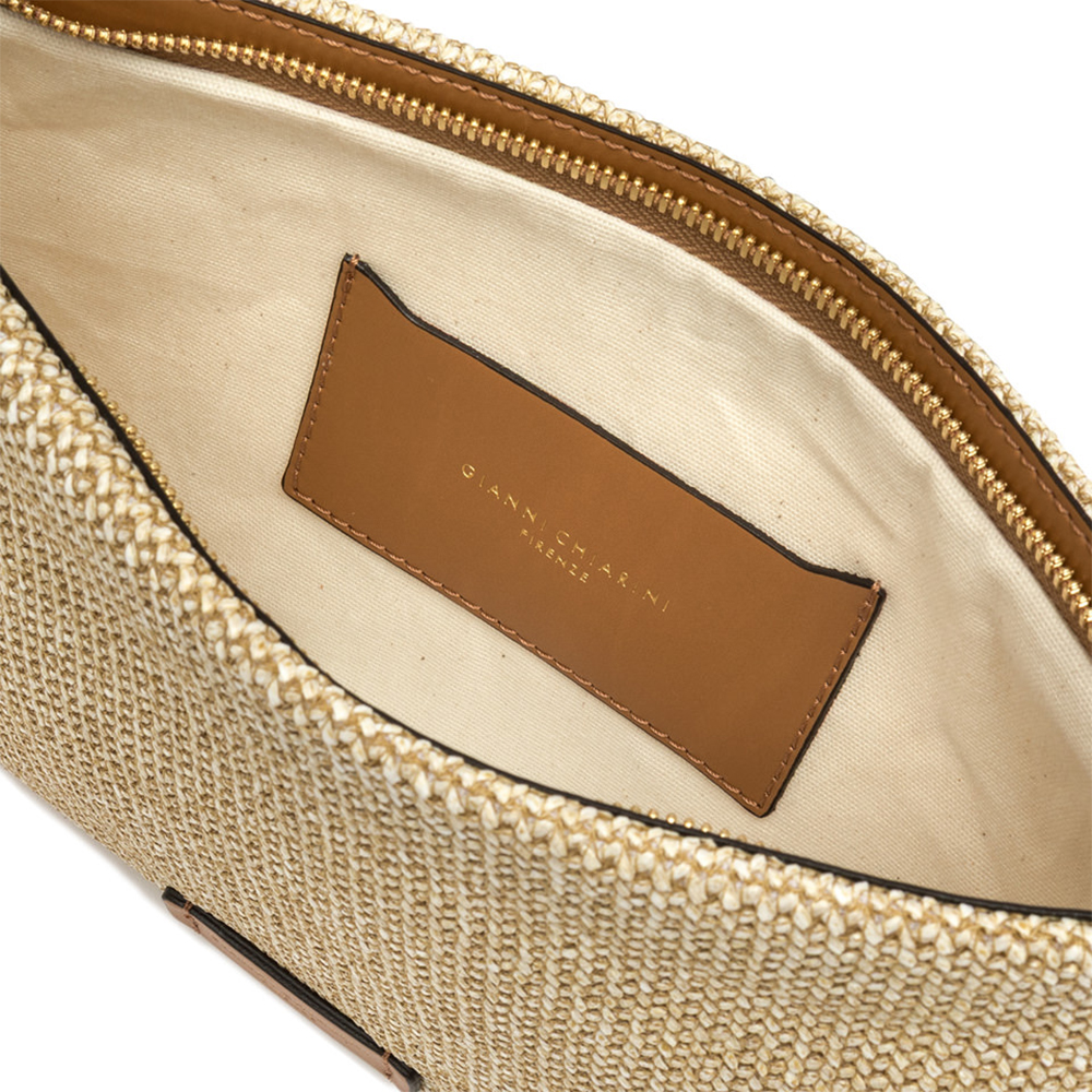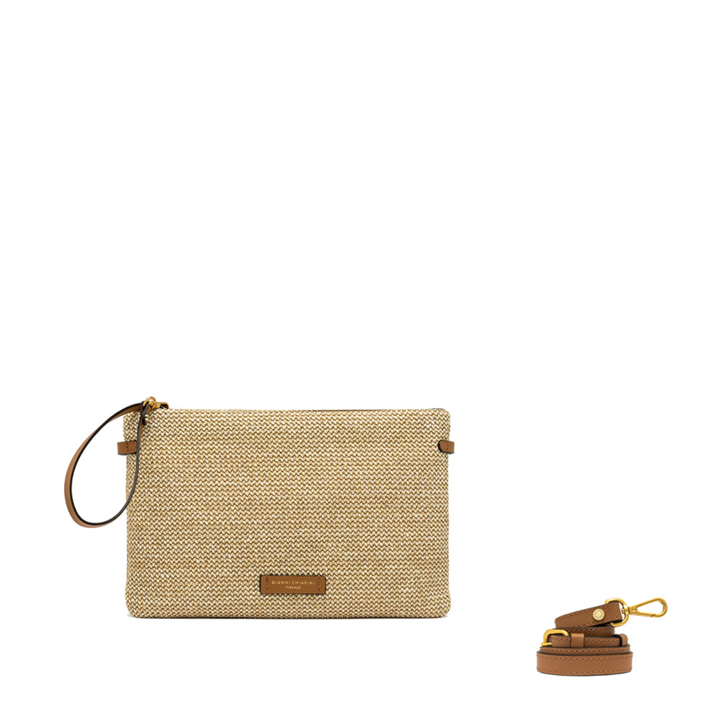 La pochette Hermy di Gianni Chiarini è l'accessorio perfetto per ogni occasione. Realizzata in paglia intrecciata e rifinita con dettagli in pelle naturale cuoio, combina eleganza e versatilità. Ideale per chi cerca uno stile fresco e giovanile, questa clutch diventa un must-have nel guardaroba di chi ama i dettagli ricercati.