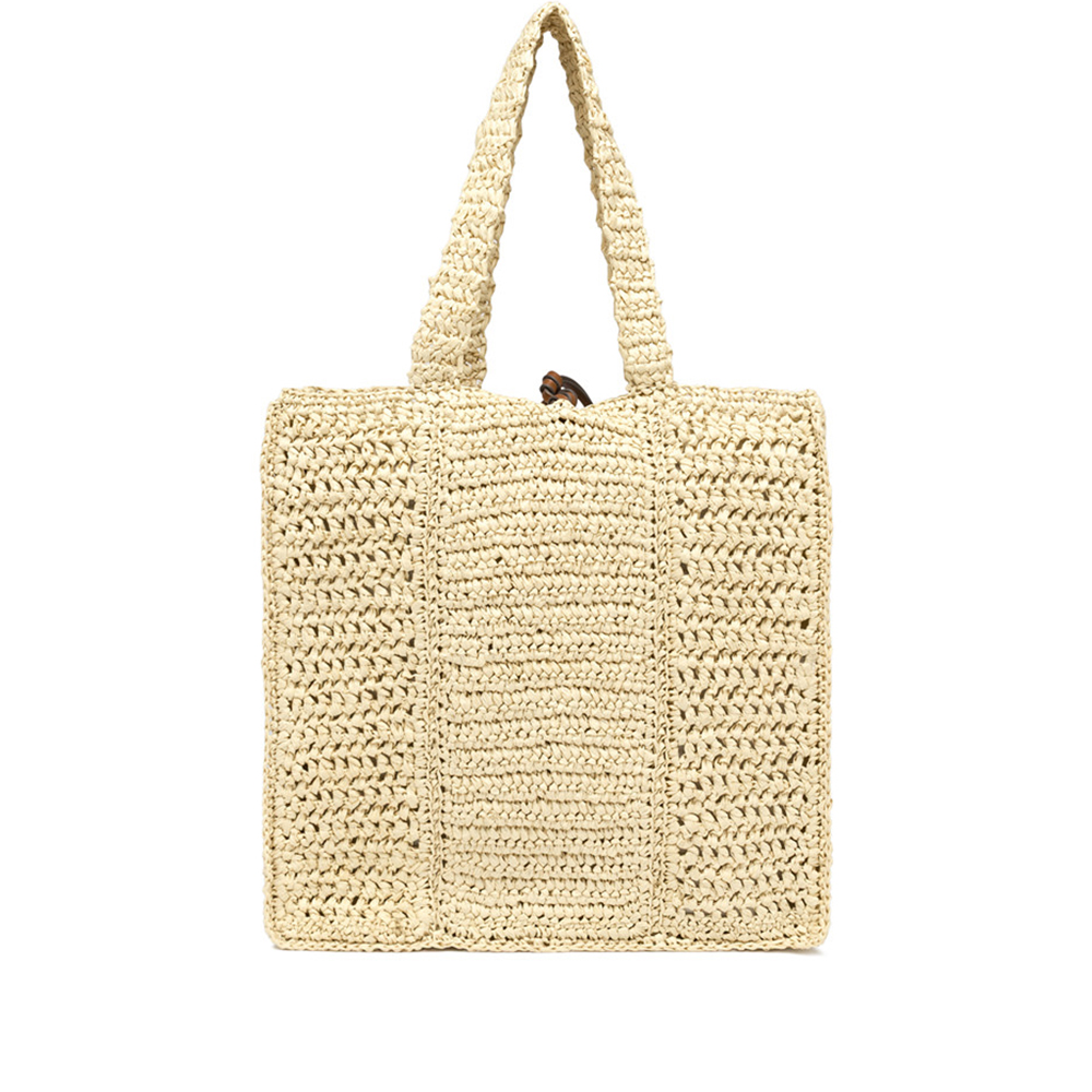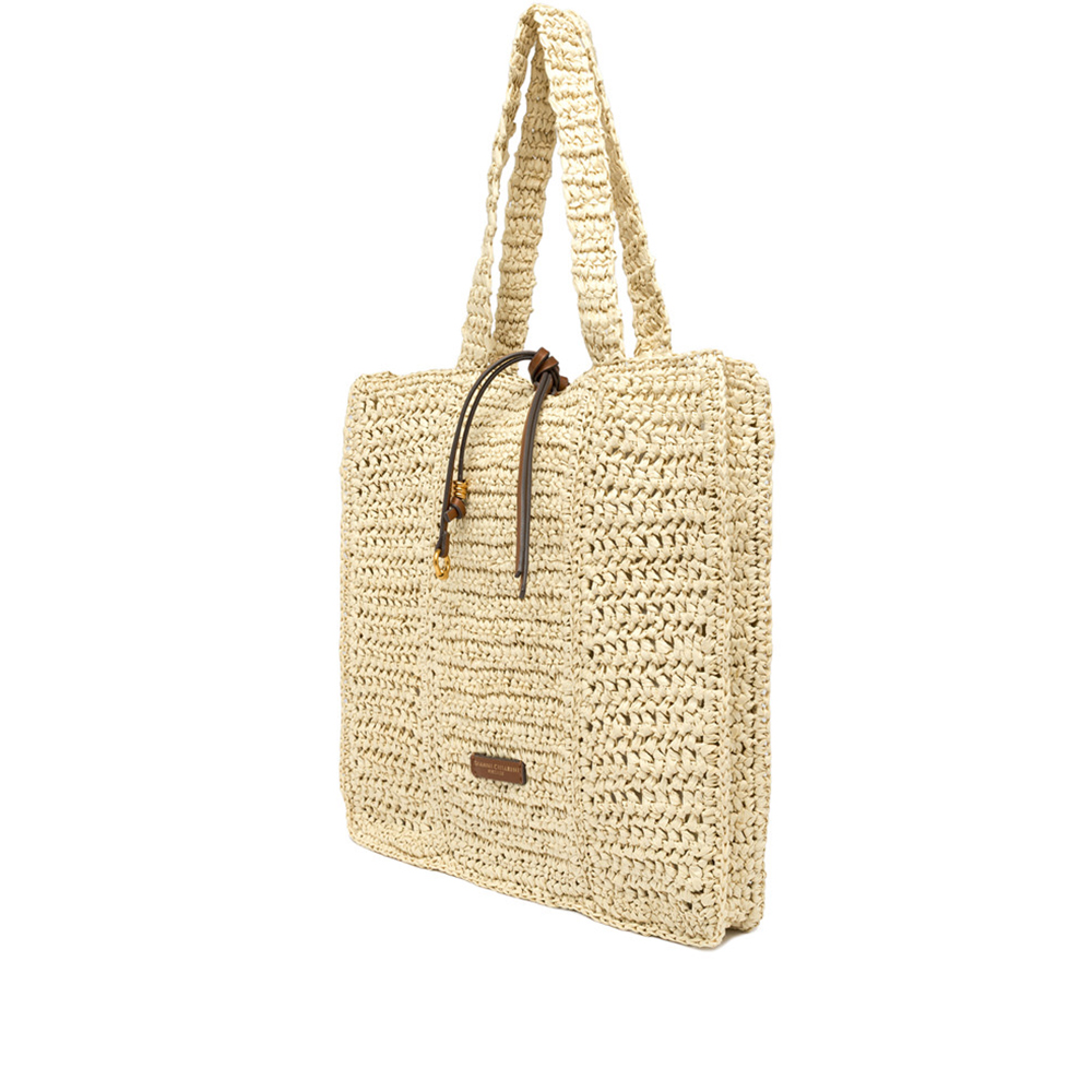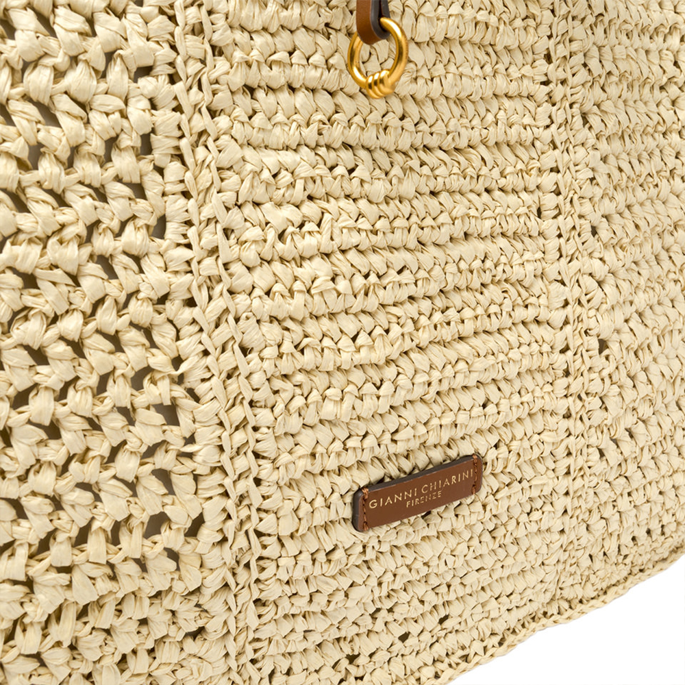 Nefeli è la nuova shopper di Gianni Chiarini, realizzata in paglia crochet, perfetta per affrontare con leggerezza e stile le giornate estive. Presenta una chiusura con cordoncino e dettagli in metallo che donano un tocco luminoso al design.