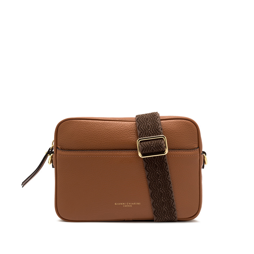 Nina by Gianni Chiarini Firenze è una pratica borsa a tracolla in pelle martellata, caratterizzata da una shape squadrata. Presenta uno scomparto principale con chiusura zip e una tasca piatta sul fronte. Dotata di una tracolla aggiuntiva in tessuto intrecciato per un utilizzo ancora più trasversale.