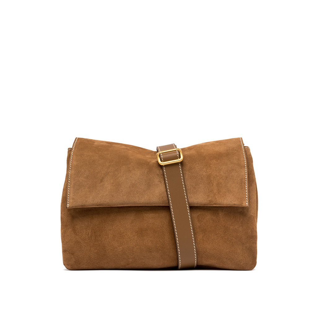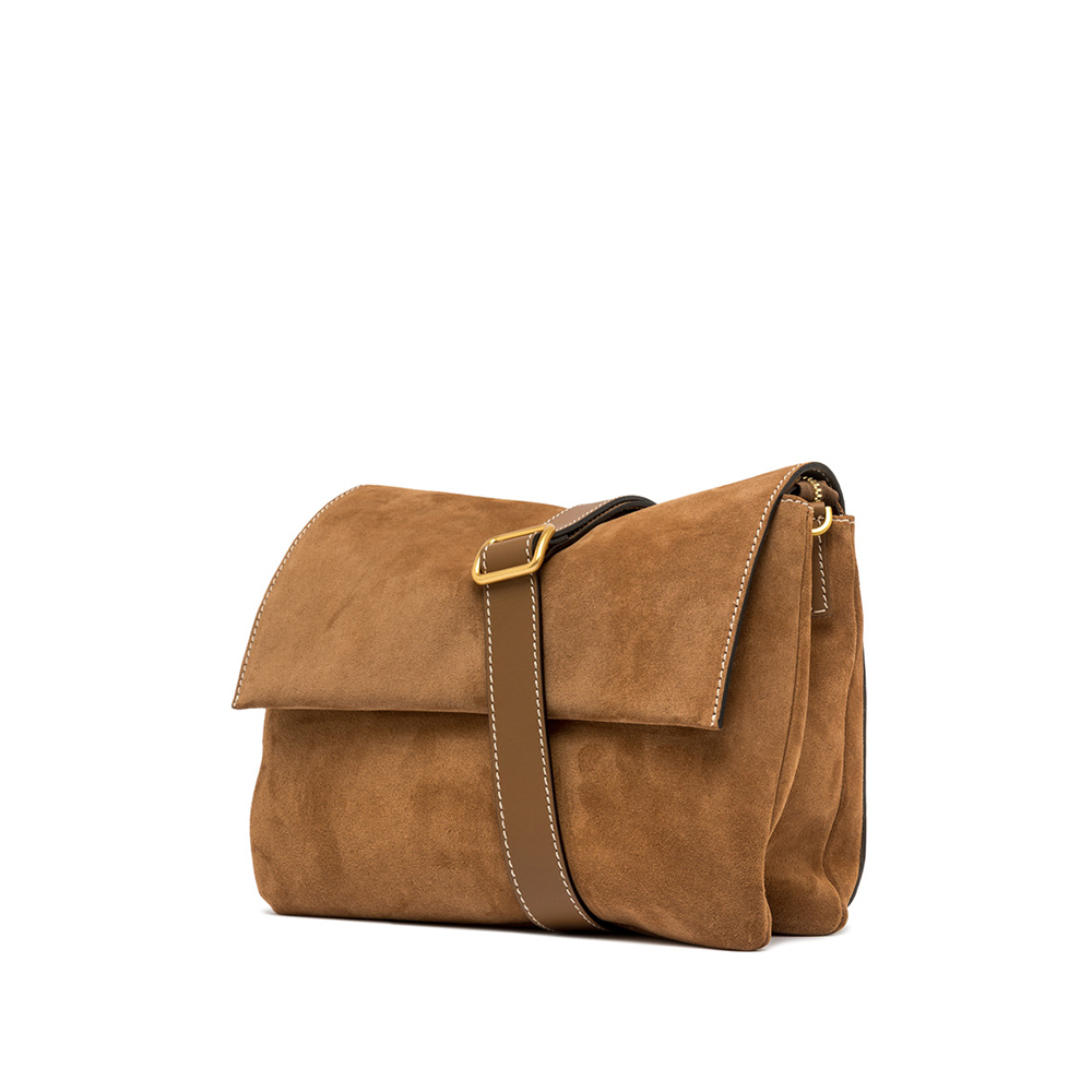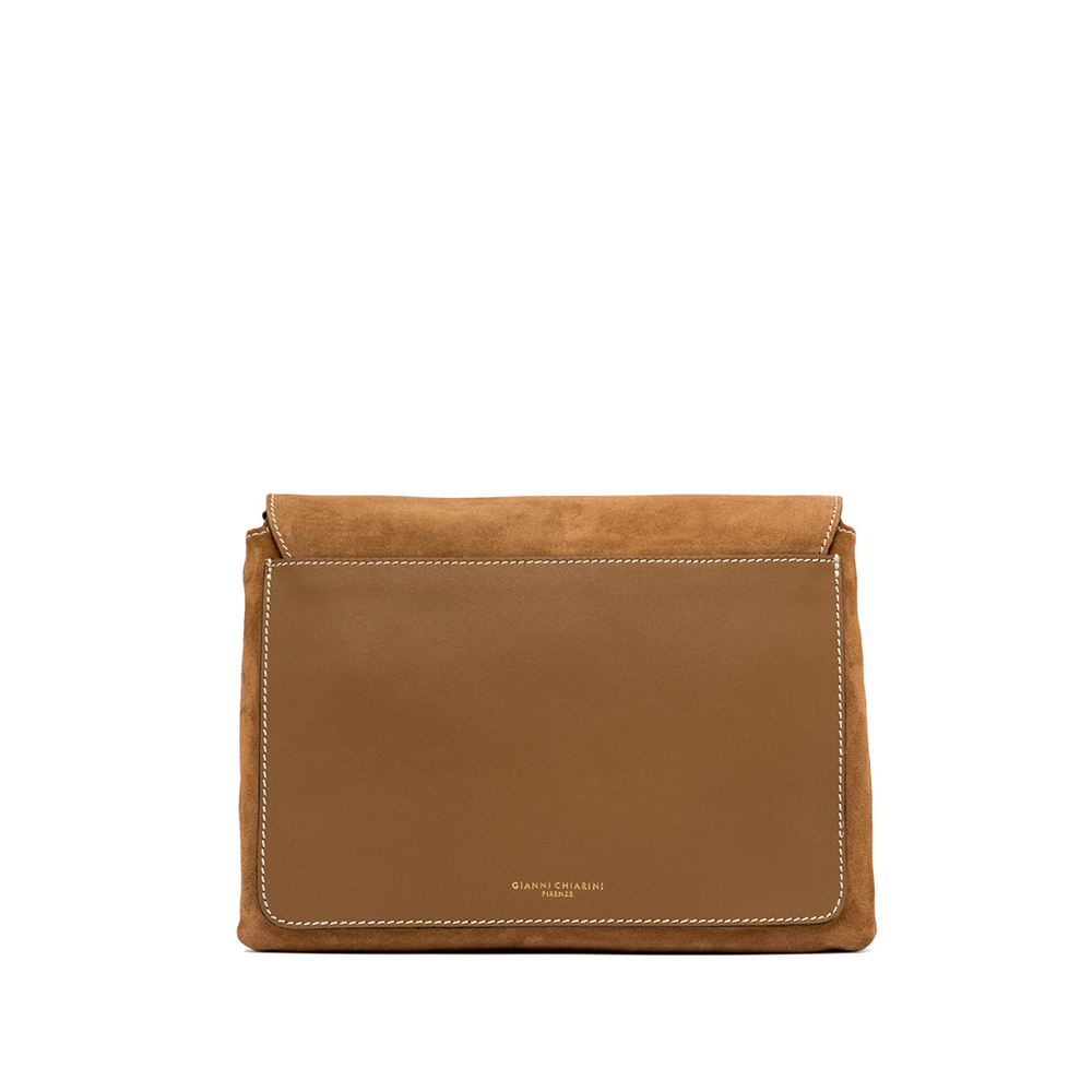 Da portare a mano o con la sottile tracolla in pelle, la borsa Three by Gianni Chiarini è realizzata in pregiata pelle scamosciata. Giovane e divertente, presenta un design innovativo che si distingue per le zip a contrasto, patta e bottone magnetico nella parte superiore. Perfetta per outfit casual, ma anche per serate eleganti.