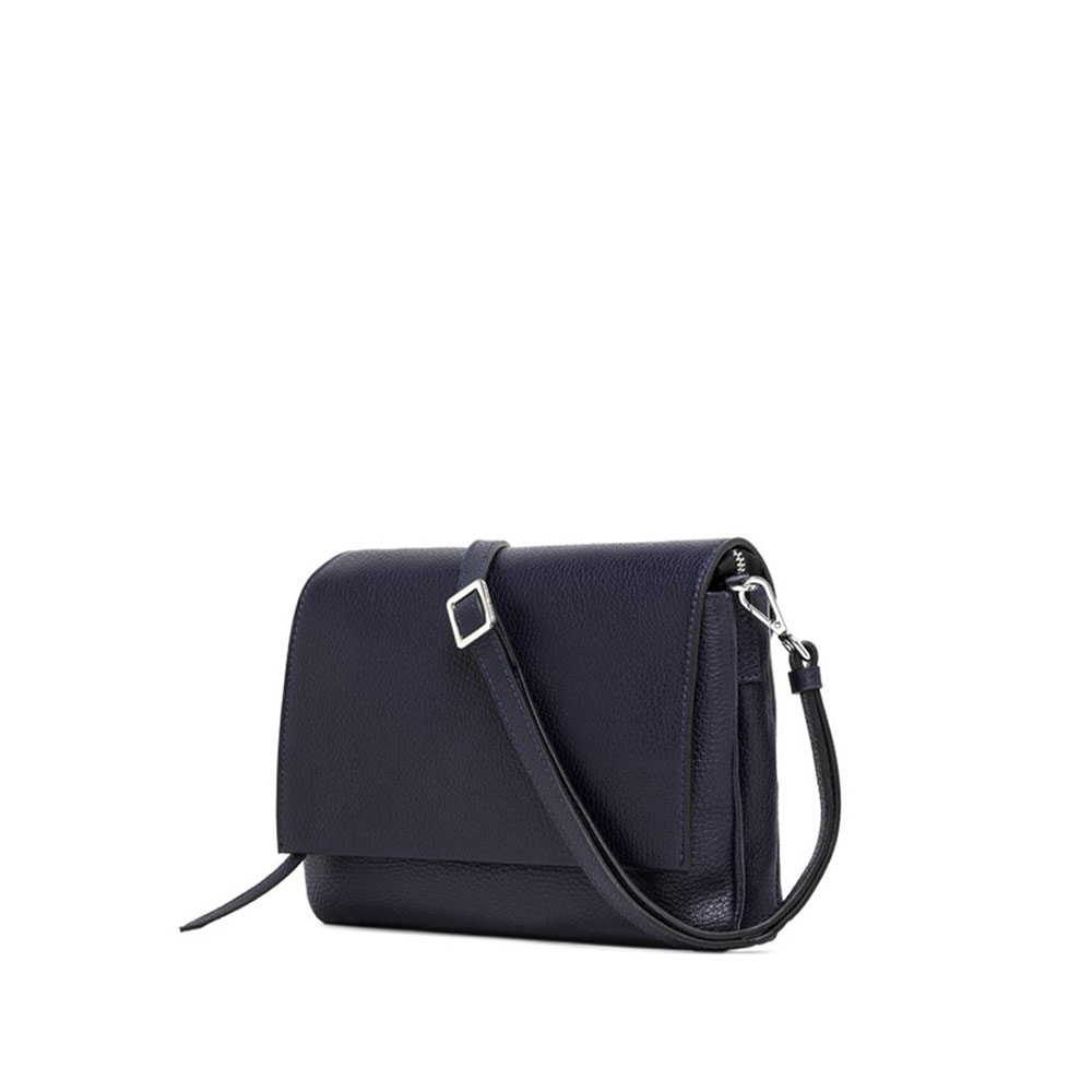 La borsa Three di Gianni Chiarini è realizzata in pregiata pelle martellata. Giovane e divertente è composta da due bustine che convergono nella parte superiore nel dettaglio della zip. Da portare con gli outfit più casual ma anche per una serata elegante per impreziosire un look semplice e monocolore.