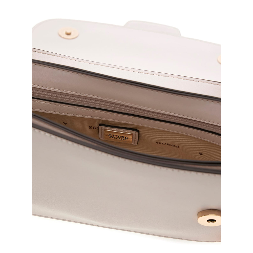 La borsa a tracolla Janie di Guess è un accessorio di stile e praticità. Caratterizzata dal logo lettering in metallo sul davanti, questa borsa è perfetta per ogni occasione, ideale per chi cerca un mix di eleganza e comodità.