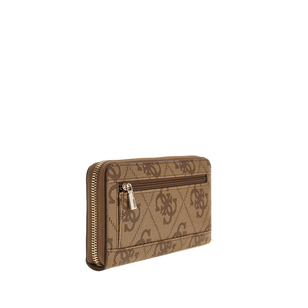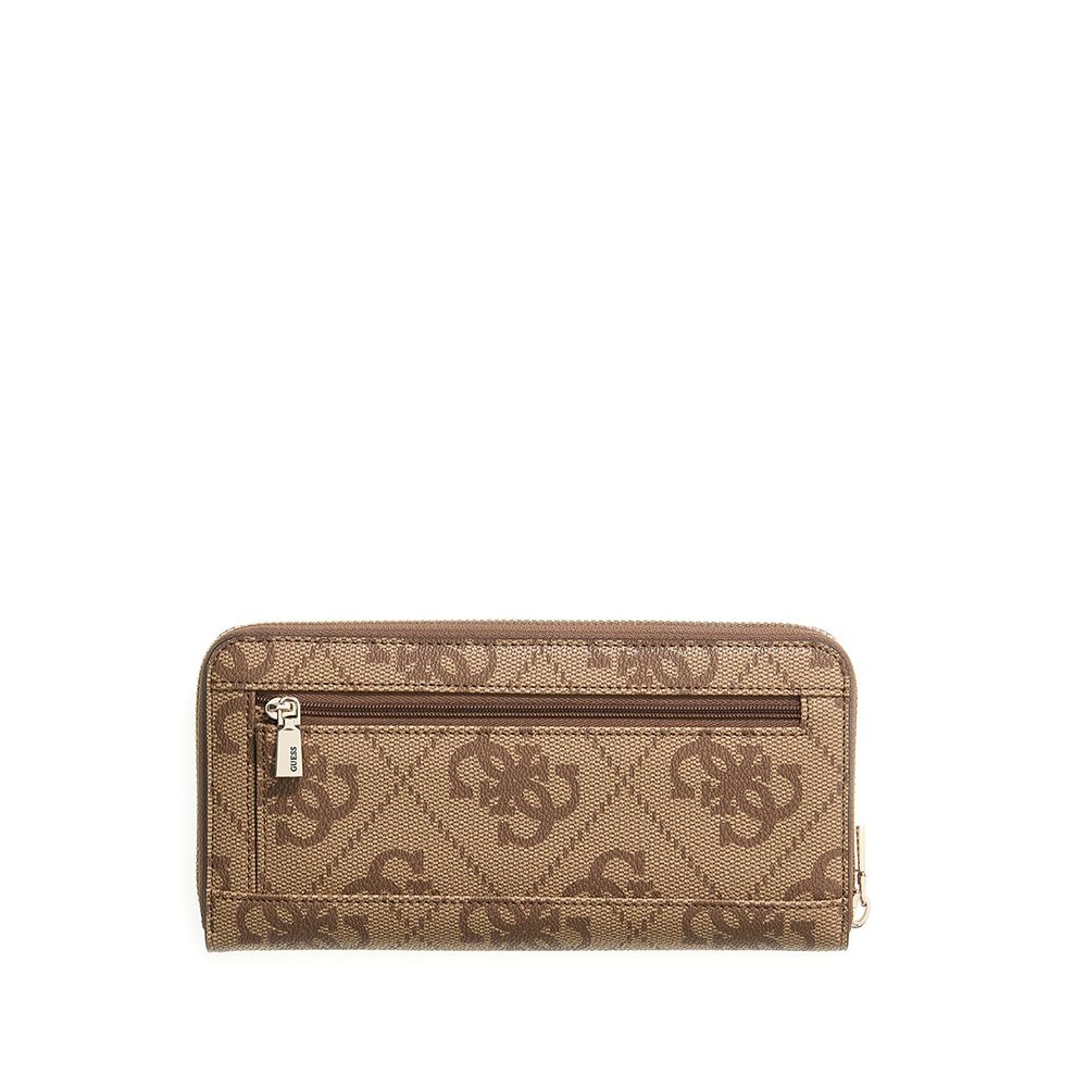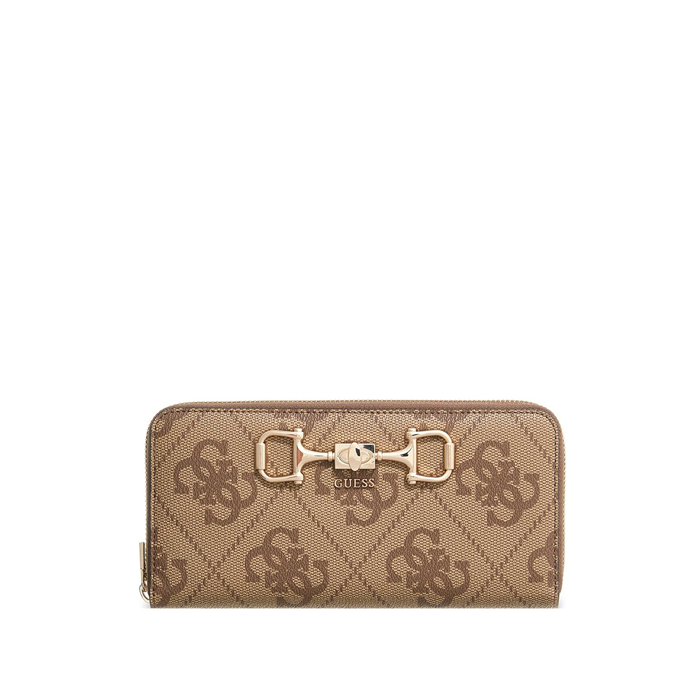 Il portafoglio Janie di Guess con chiusura zip around. Il portafoglio presenta ampio portacarte, tasca portamonete con chiusura zip e tasca esterna chiusa con zip.