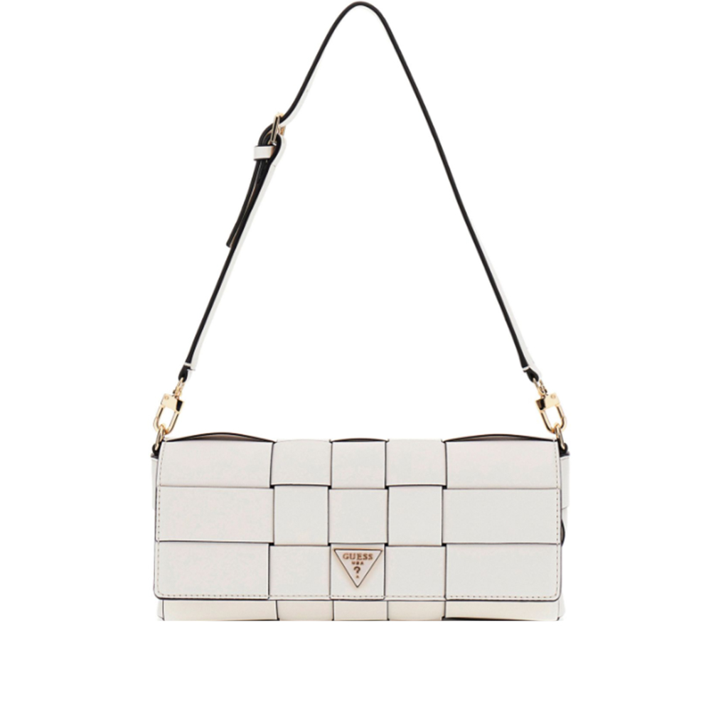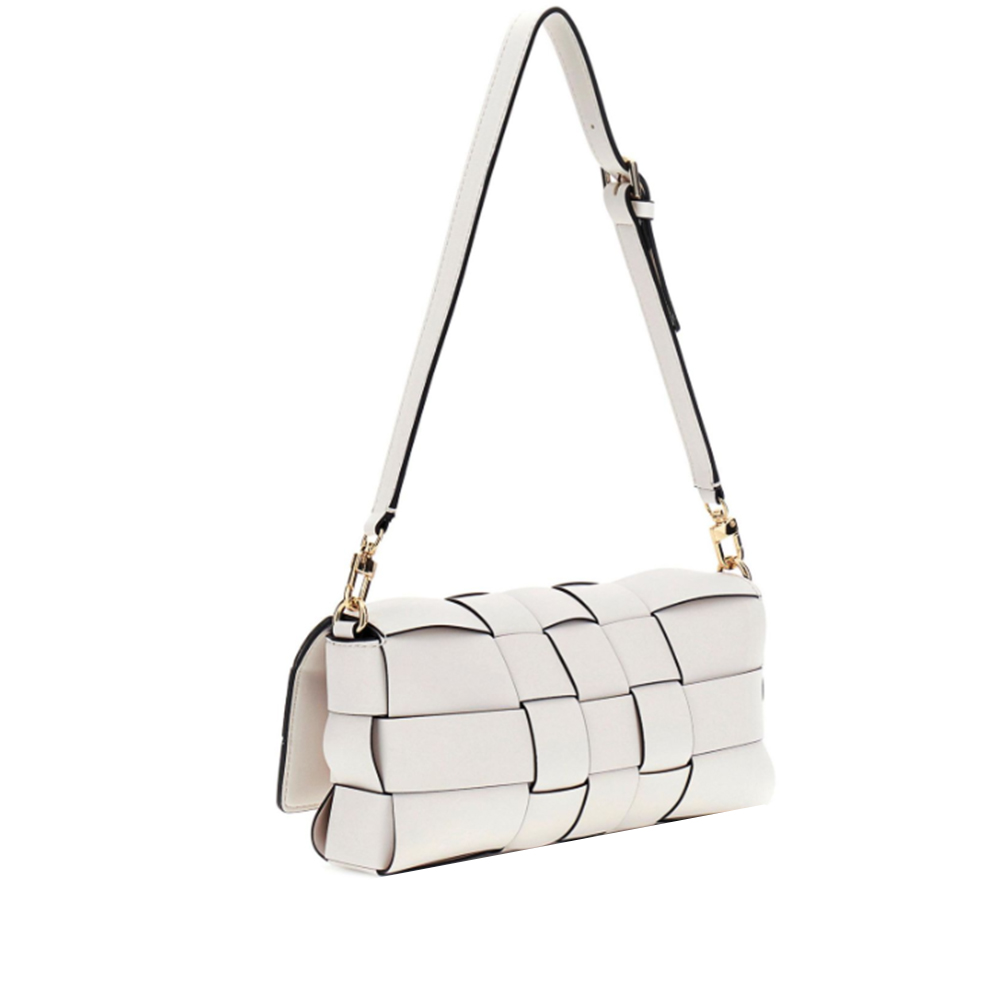 La borsa a spalla Maylee Flat di Guess, con la sua bellissima lavorazione ad intreccio, dona un'effetto morbido e rilassato. I dettagli che elevano il look, rendendo la borsa un must-have della stagione.