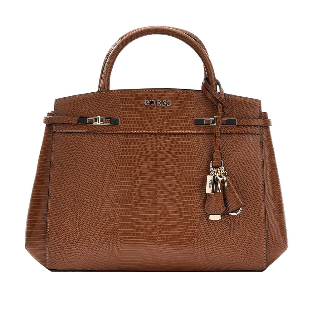 La borsa a mano Melinda di Guess, si nota per la sua eleganza e originalità, grazie alla sua forma ed al ciondolo in ecopelle, che può diventare un portachiavi. Questa borsa dalle linee semplici, può essere abbinata con qualsiasi outfit.