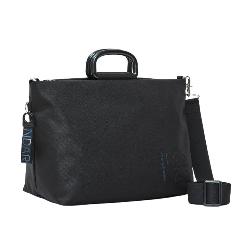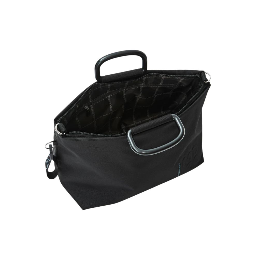 Borsa a mano media con zip in tessuto. Doppia portabilità, dettagli personalizzati e tracolla removibile e regolabile in jacquard.
