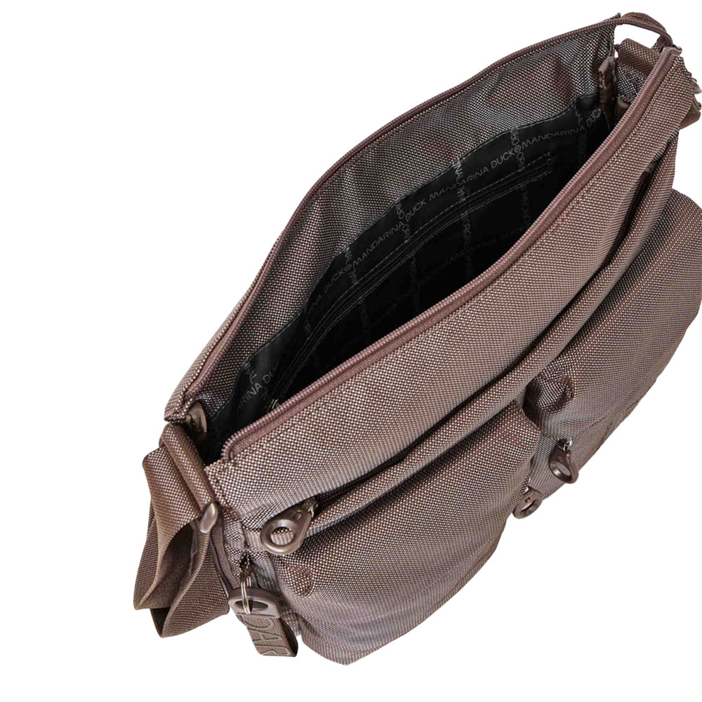 La borsa MD20 crossover di Mandarina Duck leggera e resistente, è realizzata in mitrix, storico materiale del marchio. Questo modello di borsa è espandibile grazie alla zip laterale. La tracolla regolabile si adatta a tutte le esigenze e le portabilità. Le doppie tasche frontali e le tasche interne laterali la rendono organizzata e pratica. Grazie al restyling degli accessori il look è più moderno e contemporaneo.