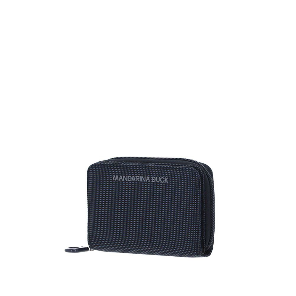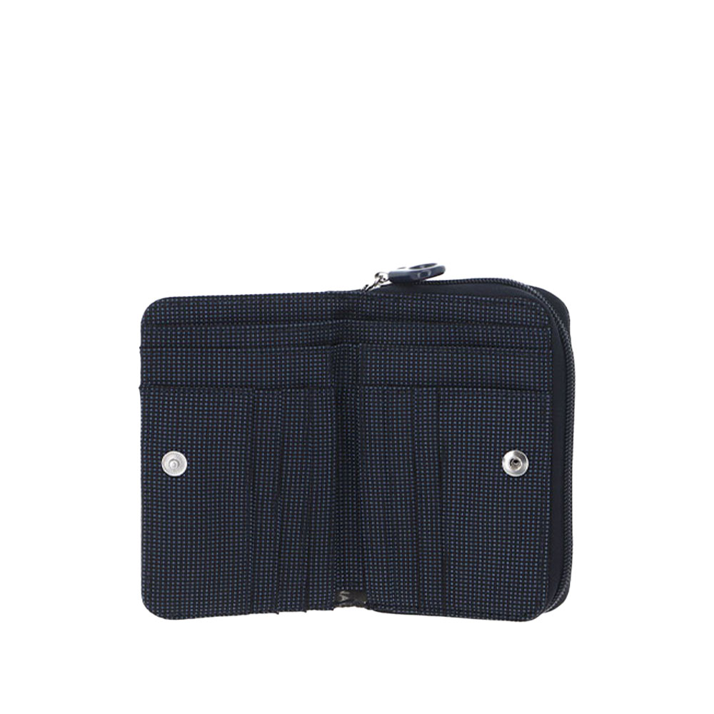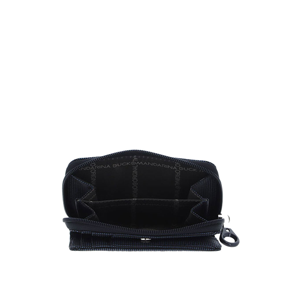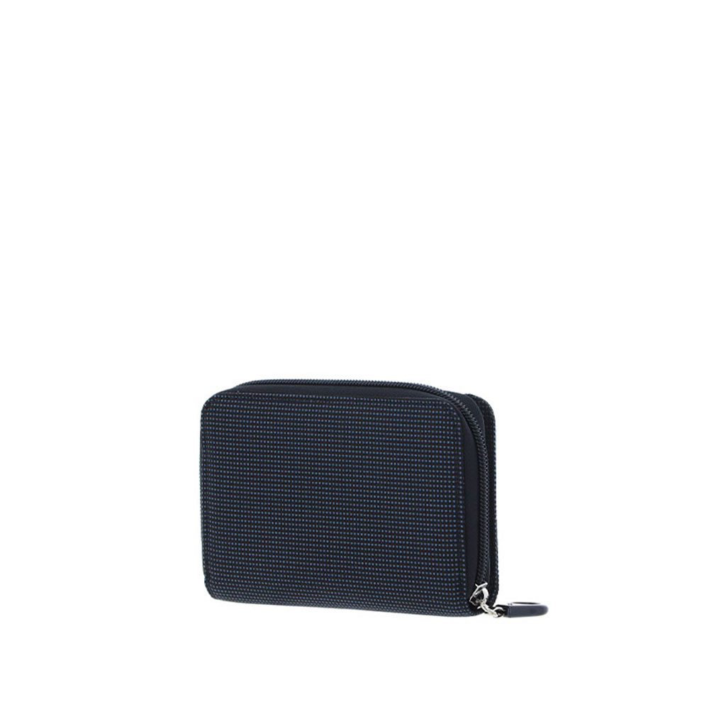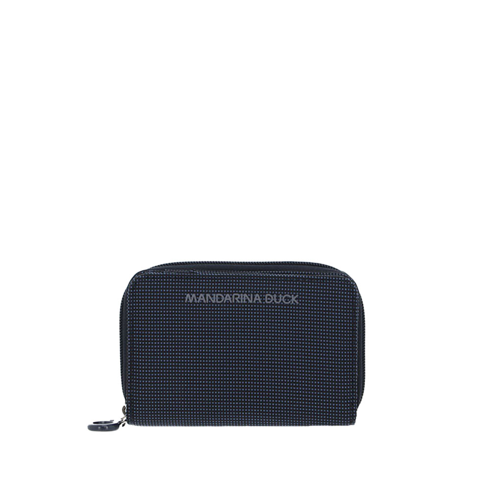 Piccolo portafoglio MD20 di Mandarina Duck con zip around in mitrix, storico materiale del marchio caratterizzato da resistenza, versatilità ed effetto cangiante. Presenta una patta con bottone a pressione per le carte di credito.