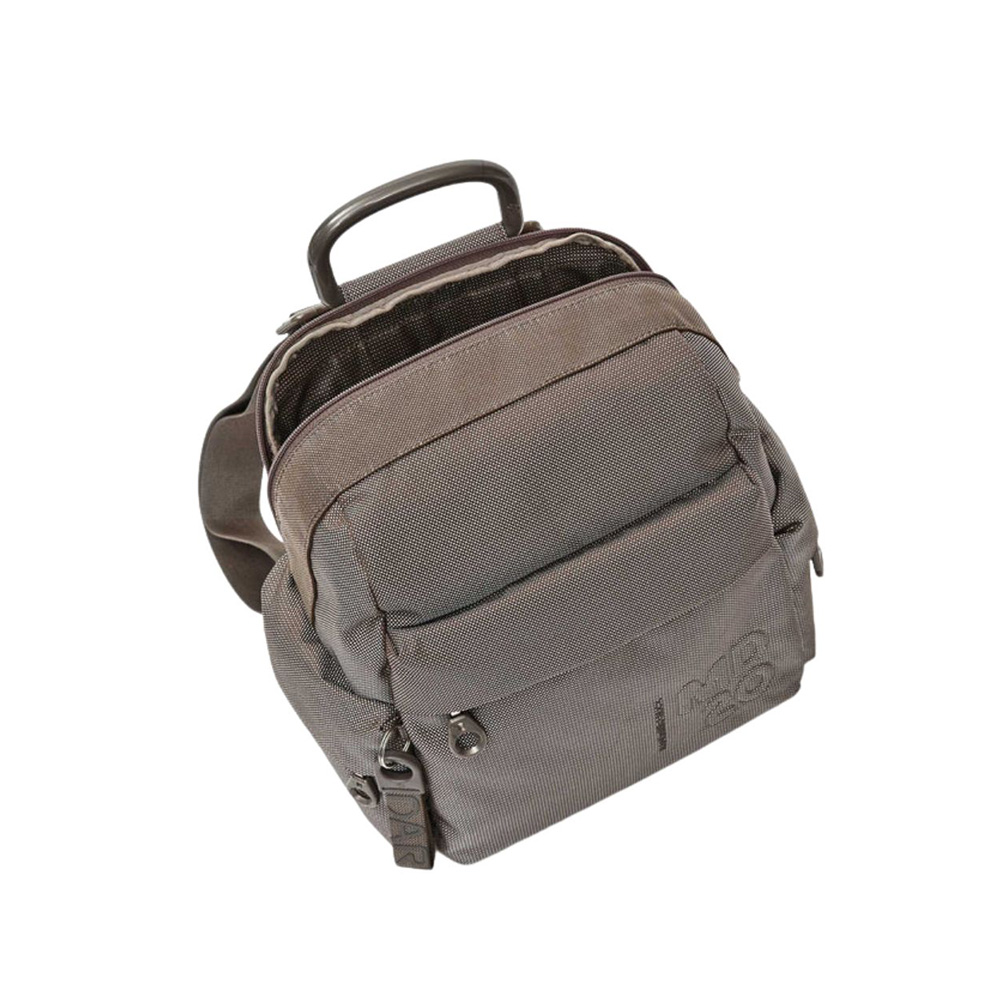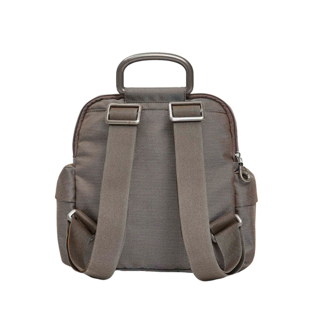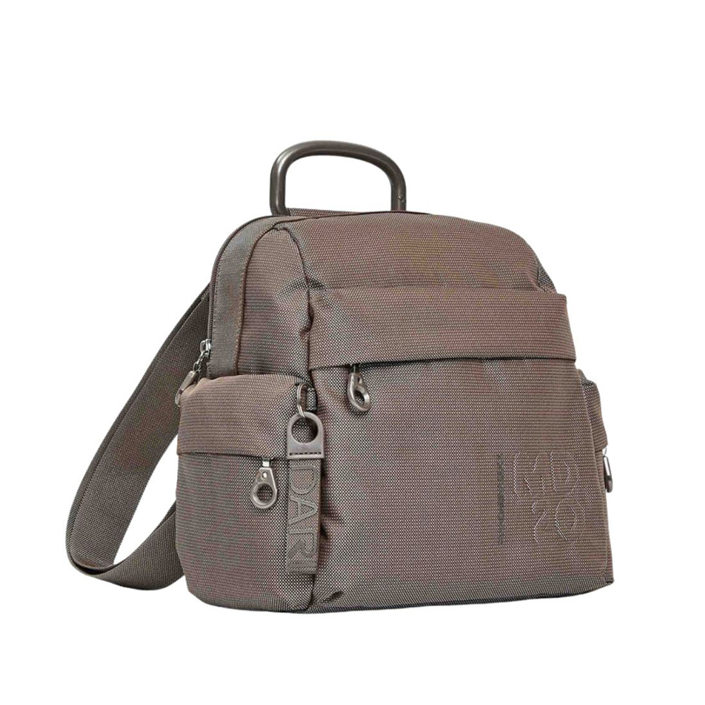 Lo zaino MD di Mandarina Duck di piccole dimensioni in mitrix, storico materiale del marchio, leggero, versatile e connotato da un originale effetto cangiante. Gli spallacci regolabili uniti alle tasche zippate interne ed esterne lo rendono comodo e funzionale. Grazie al restyling degli accessori il suo look è più moderno e contemporaneo.