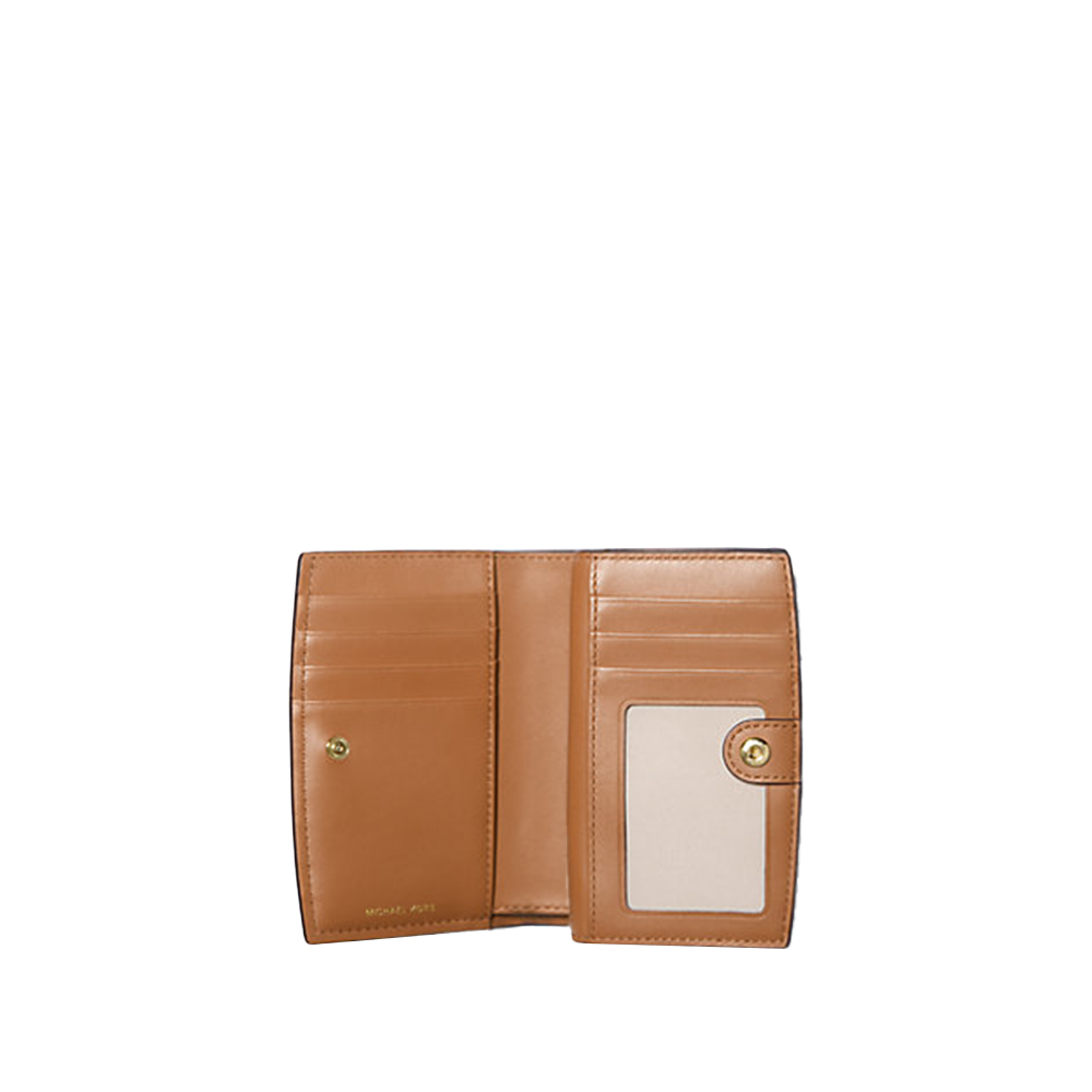 Il portafoglio Bryant di Michael Kors con stampa logo è un accessorio elegante, ideale per tenere in ordine i tuoi oggetti essenziali. Dotato di una chiusura con bottone a pressione, presenta una tasca portadocumenti e scomparti extra per custodire carte di credito, banconote e ricevute. Riponilo nella tua portatutto o portalo a mano mentre sei in viaggio.