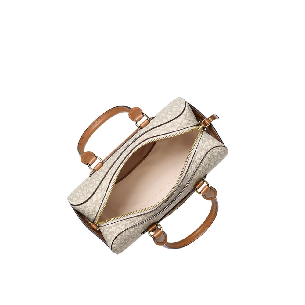 Michael Kors ha rivisitato la borsa a tracolla Jet Set Travel con stampa logo aggiungendo tasche facilmente accessibili e un ciondolo ispirato ai bagagli. Dotata di robusti manici e di una tracolla regolabile per uno stile versatile, presenta un interno compatto, ideale per riporre tutto l'indispensabile. L'esterno in resistente tela rivestita resiste ai graffi e all'usura.