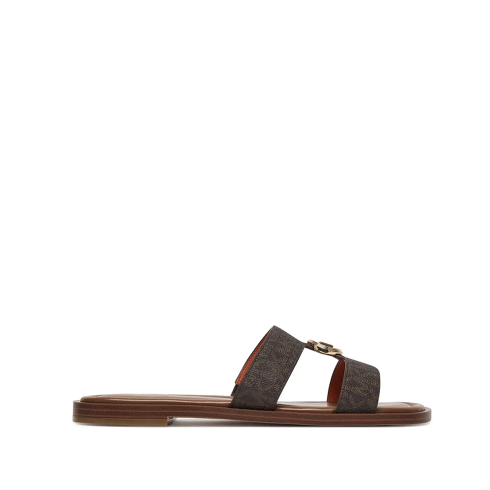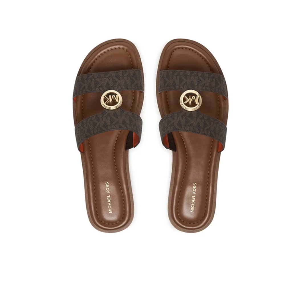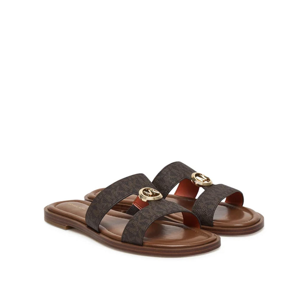 Sandalo Erin di Michael Kors in pelle. Chic, eleganti e infinitamente versatili. I sandali Erin di Michael Kors sono un modello slip-on in pelle liscia con una doppia fascia impreziosita da un ciondolo con logo. Indossali per valorizzare qualsiasi look, di giorno o di sera.