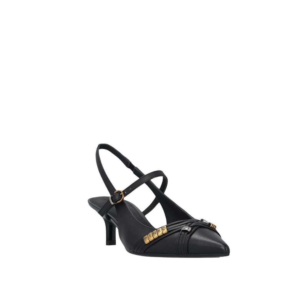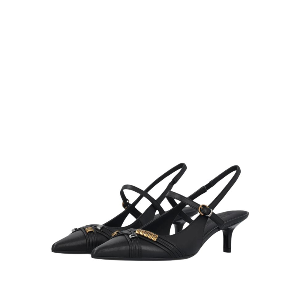 Le Slingback Gloria 18 di Pinko sono realizzate in morbida nappa con tacco basso dallo spirito sofisticato e contemporaneo. Il design affusolato con punta sfilata è valorizzato da cinturini sottili che si incrociano delicatamente sul collo del piede, assicurando sostegno e un tocco di sensualità. I cinturini sono arricchiti da preziose applicazioni metalliche, tra cui anelli dorati disposti a formare l'conico logo lettering PINKO. Un modello versatile, ideale per look formali, serate eleganti o per elevare un outfit casual con un accento deciso e glamour.