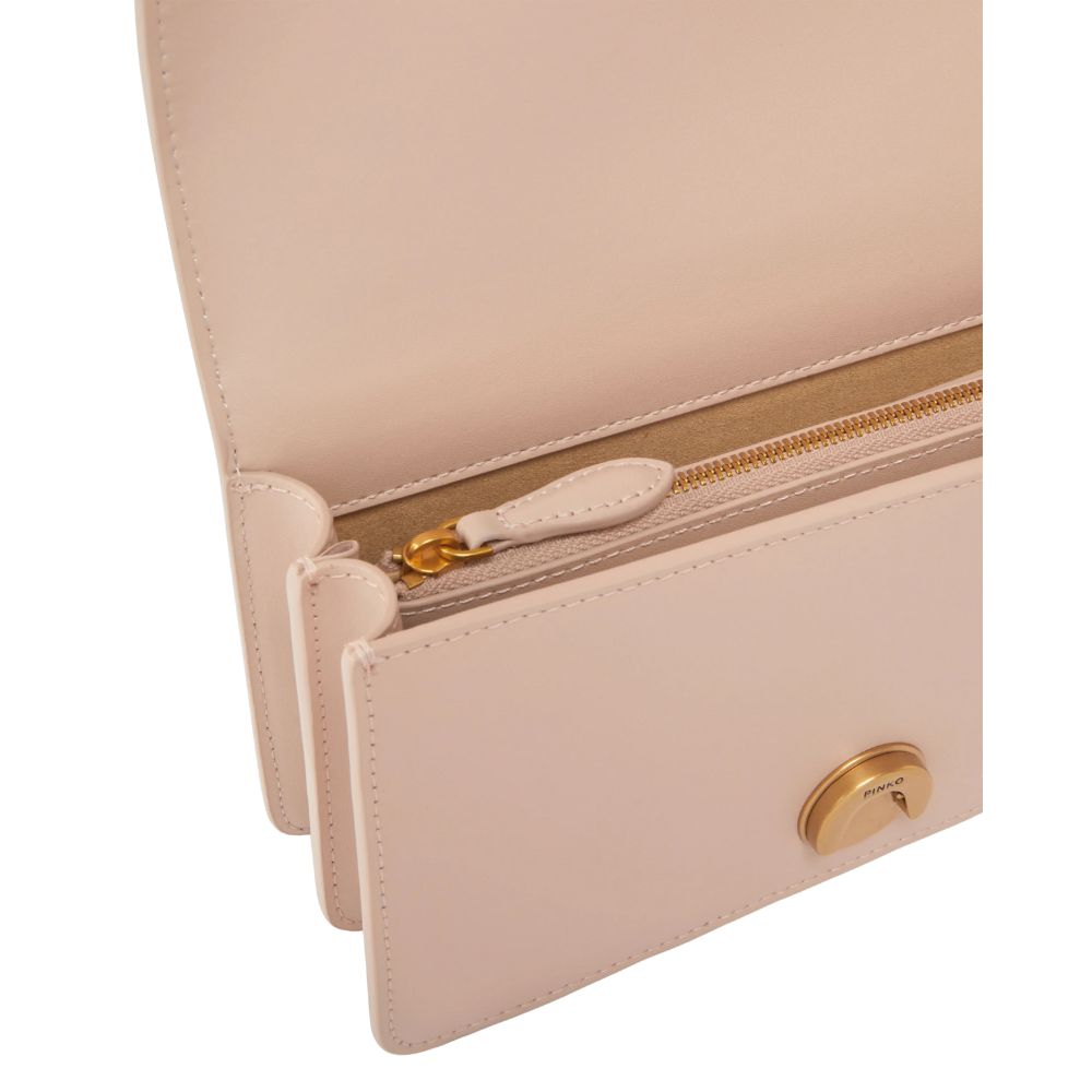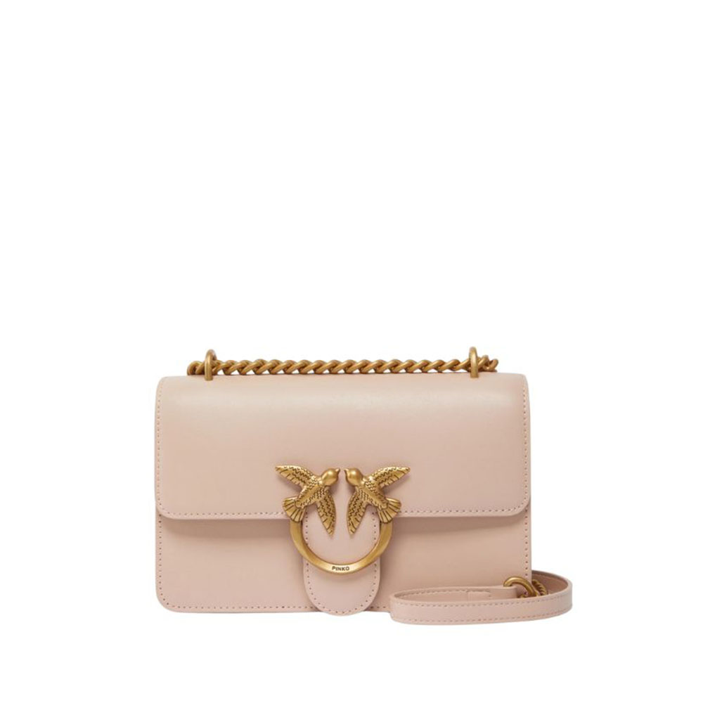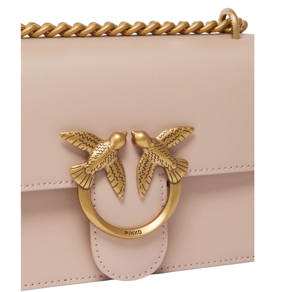 La borsa a tracolla Mini Love Bag One è in morbida pelle mano seta. La chiusura è completata dall'iconica fibbia in metallo Love Birds Diamond Cut in metallo. L'interno è foderato in microfibra scamosciata e comprende tramezza chiusa con zip e tasca a parete in pelle. La tracolla combina la classica catena rotonda al pratico spallaccio in pelle regolabile.
