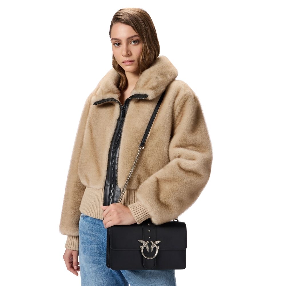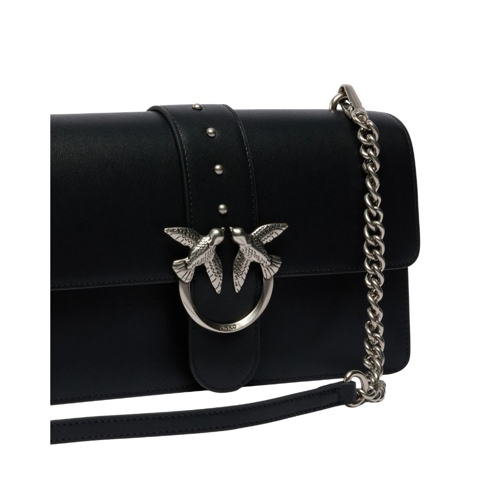 La borsa love bag one silmply di Pinko in morbida pelle mano seta. La chiusura con baccello in pelle e borchie è completata dall'iconica fibbia in metallo Love Birds Diamond Cut in metallo.