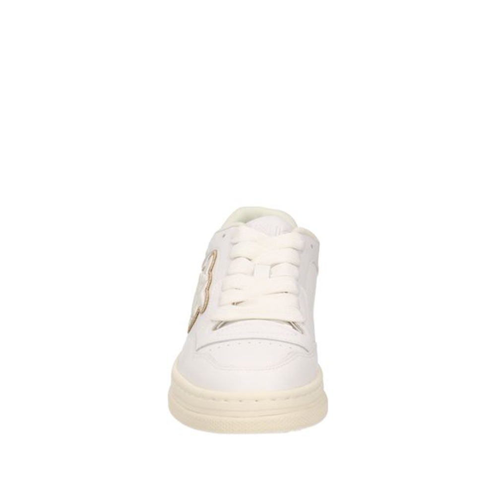 Le sneakers Mandy di Pinko in pelle con inserti di colore platinum. Logo Love Birds Monogram in tessuto nella parte laterale.