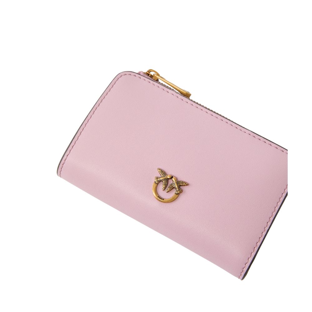 Il portafoglio da donna di Pinko è ben organizzato con diversi vani per carte e documenti, mentre l'esterno è completato da uno scomparto portamonete chiuso con zip ed è personalizzato con una placchetta in metallo raffigurante l'iconico logo Love Birds Diamond Cut.