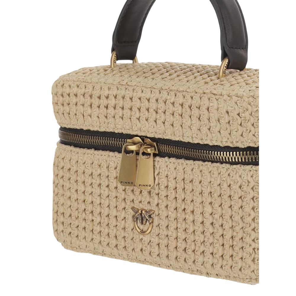 La borsa a mano Vanity Soft Mini in rafia di Pinko è la mini bag perfetta per la stagione calda: combina una texture estiva e naturale con dettagli eleganti e a contrasto. Il corpo è realizzato in rafia intrecciata, mentre i manici in pelle nera donano carattere e rendono la borsa facile da abbinare, dal daywear ai look da aperitivo. L'hardware oro (anelli e finiture) completa il design con un tocco luminoso.